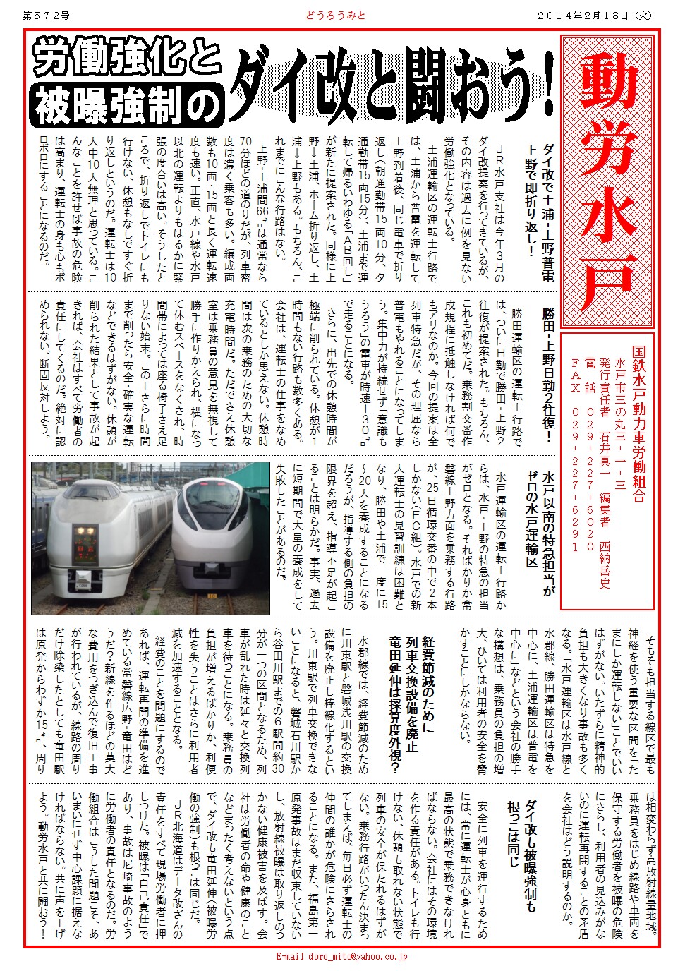 『動労水戸情報』バックナンバーをブログからどうぞ