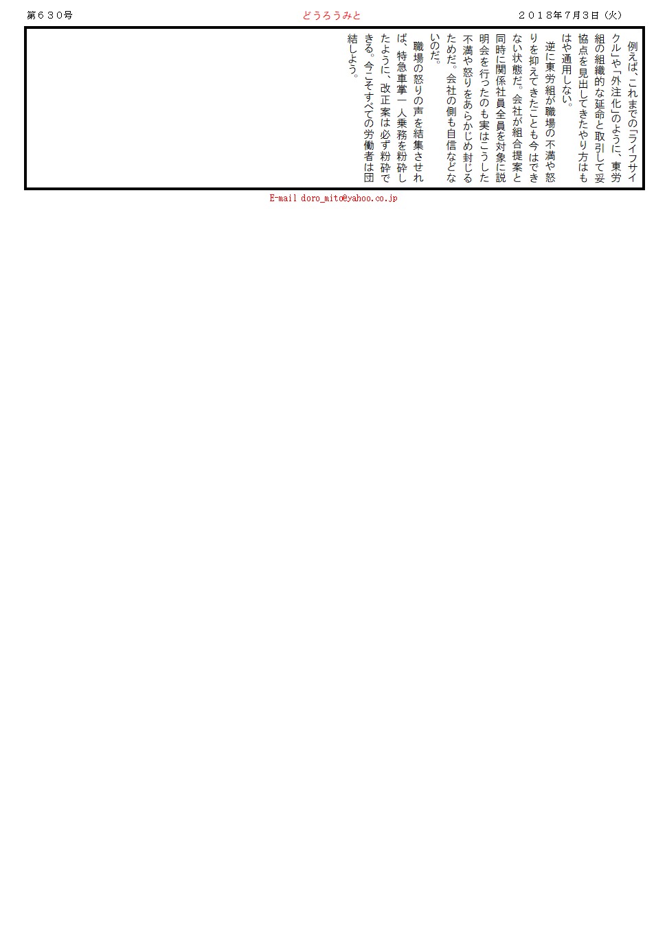 職場の怒りの声を結集させれば、特急車掌一人乗務を粉砕したように、改正案は必ず粉砕できる。今こそすべての労働者は団結しよう。