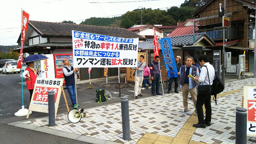 大子運輸科でストに入りました!10時から大子駅で街宣開始。