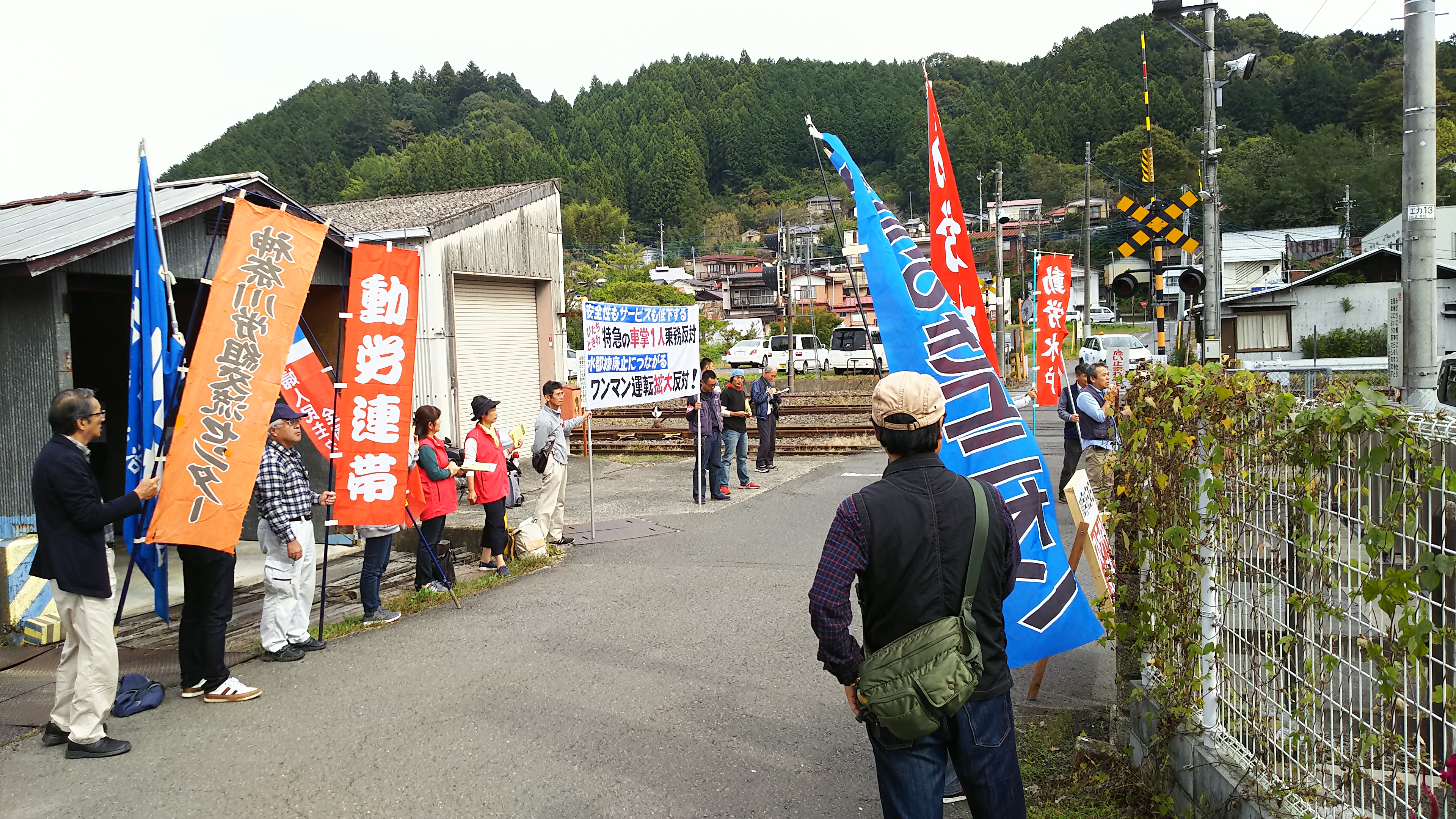 木村書記長に取材する東京新聞の記者さんです。「新幹線の事件の後なのに、ワンマンとはどういうことなんでしょうか?」等聞いていました。水郡線の事情にも詳しい人でした。