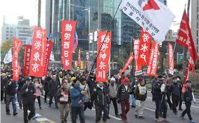 (ソウルデモ。韓国民主労総と共に。)【東労組臨時大会について】①三地本の問題は議題としてあげられる事はなかった。②議長団3人の所東京で1人でたけど選出方法でもめたが3名連記になったため落選。