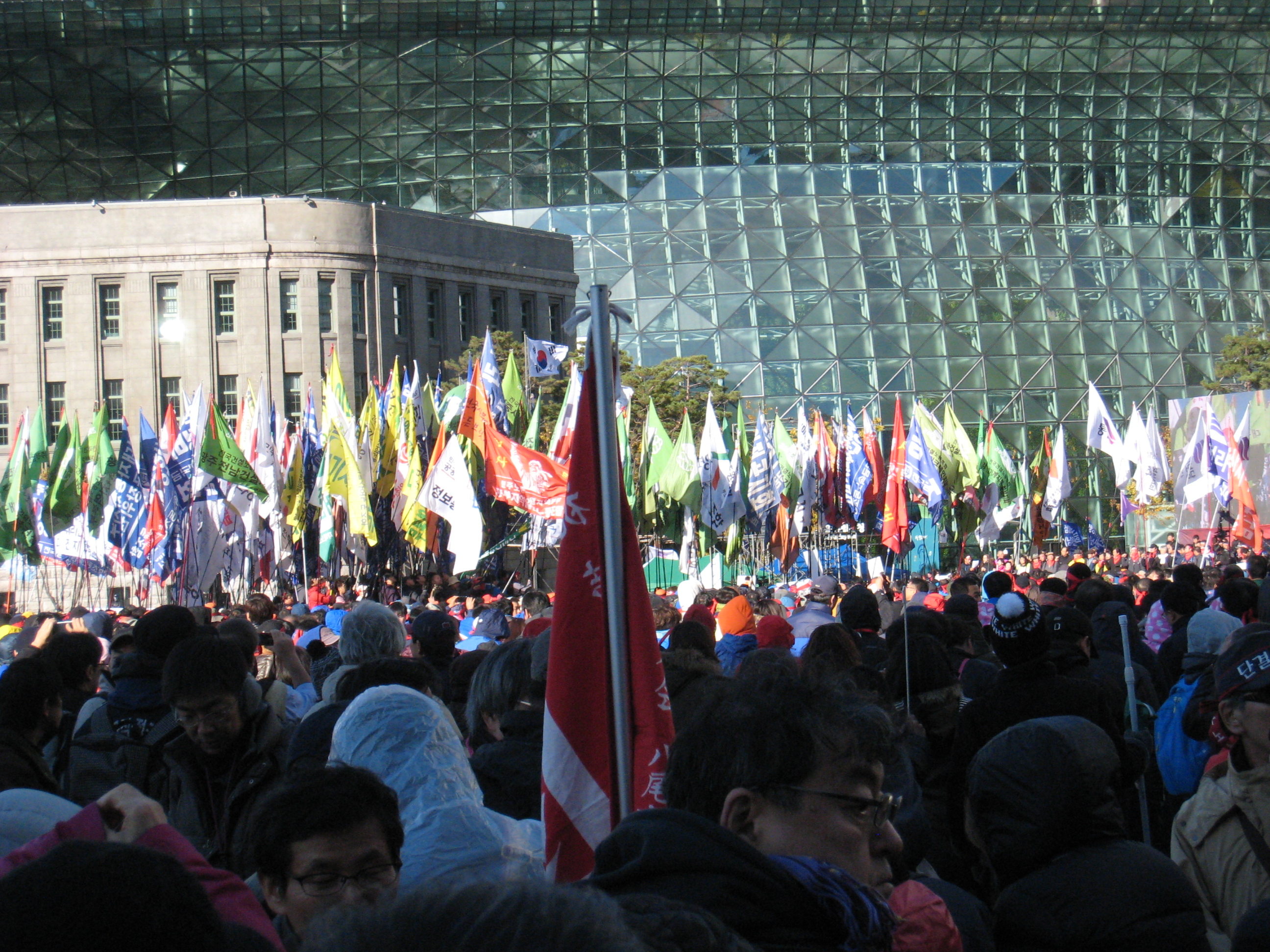 全国から5万人が結集し、ソウル市庁舎前の広場を埋め尽くしました。