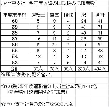 団交の最初に、今年度以降の国鉄採用者の退職者数(16年8月1日現在)を明らかにさせた。