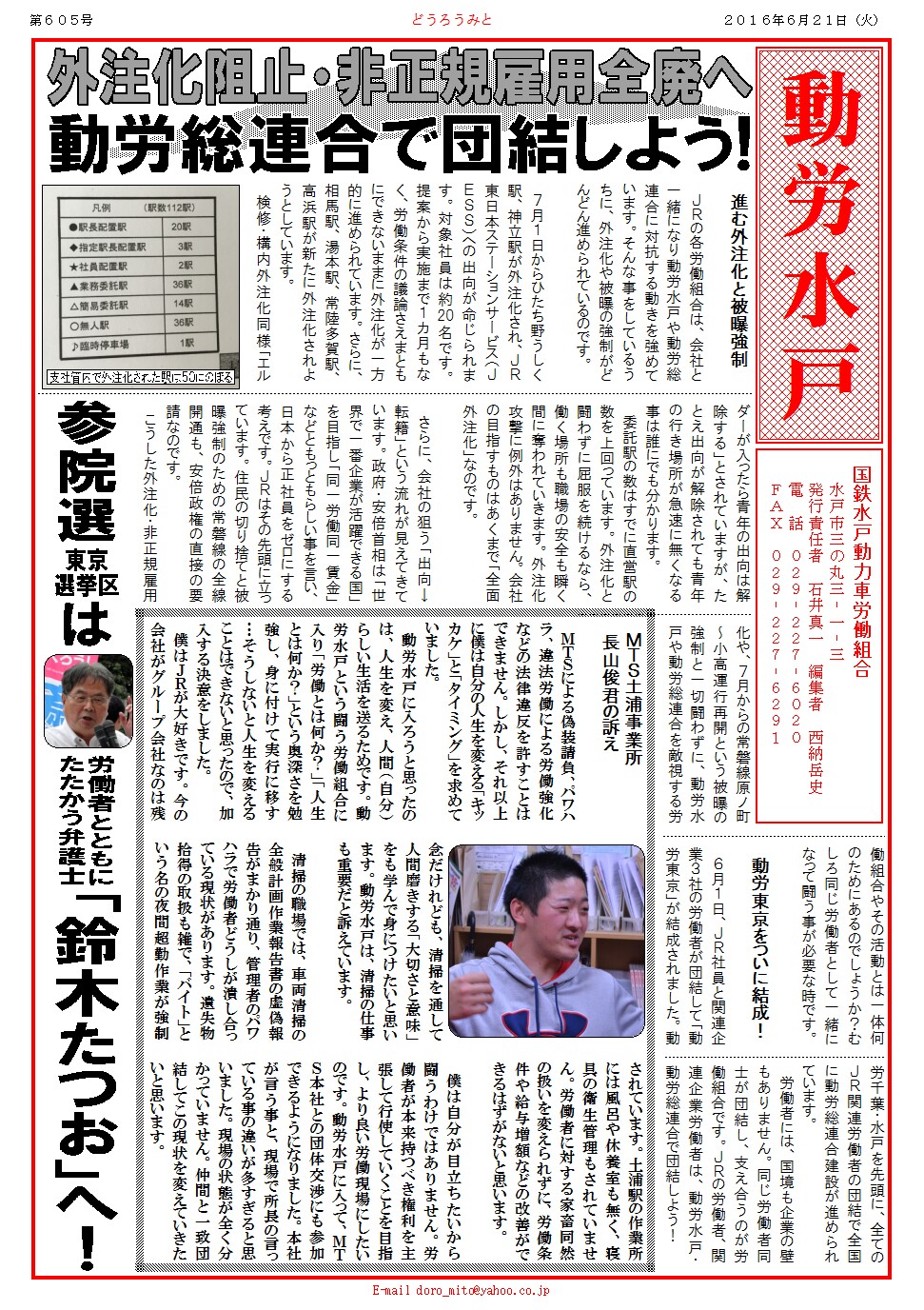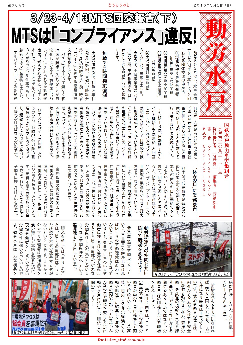 前号603号では、水戸鉄道サービス(MTS)本社との2回にわたる団体交渉の中から、