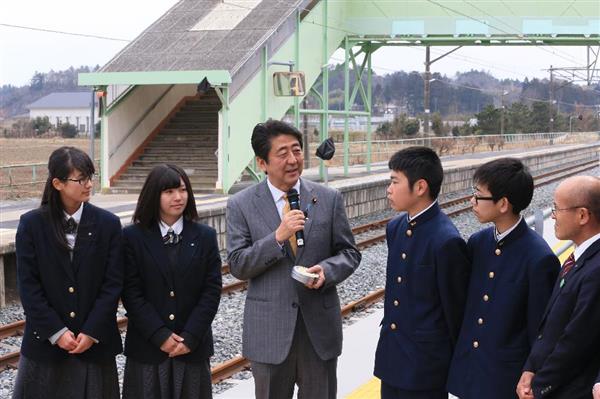 3月5日、福島を訪問した安倍首相は、JR東日本富田哲郎社長と共に常磐線の2019年度末までの全線開通を宣言しました。