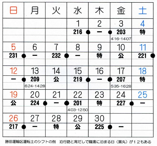 ①…勝田の運転士行路では、日勤13本中11本が宵出し行路(うち朝4時台の出勤が6本もある)であり、泊行路と合わせて実に月12回も職場に泊することになります。また、行路緩和のための常磐・水戸線のミックスができなくなり、その代わりに1日に勝田~上野2往復+品川回しや、朝4時出勤で上野から普通列車品川回しで水戸まで3時間連続乗務など、凄まじい行路が強制されます。
