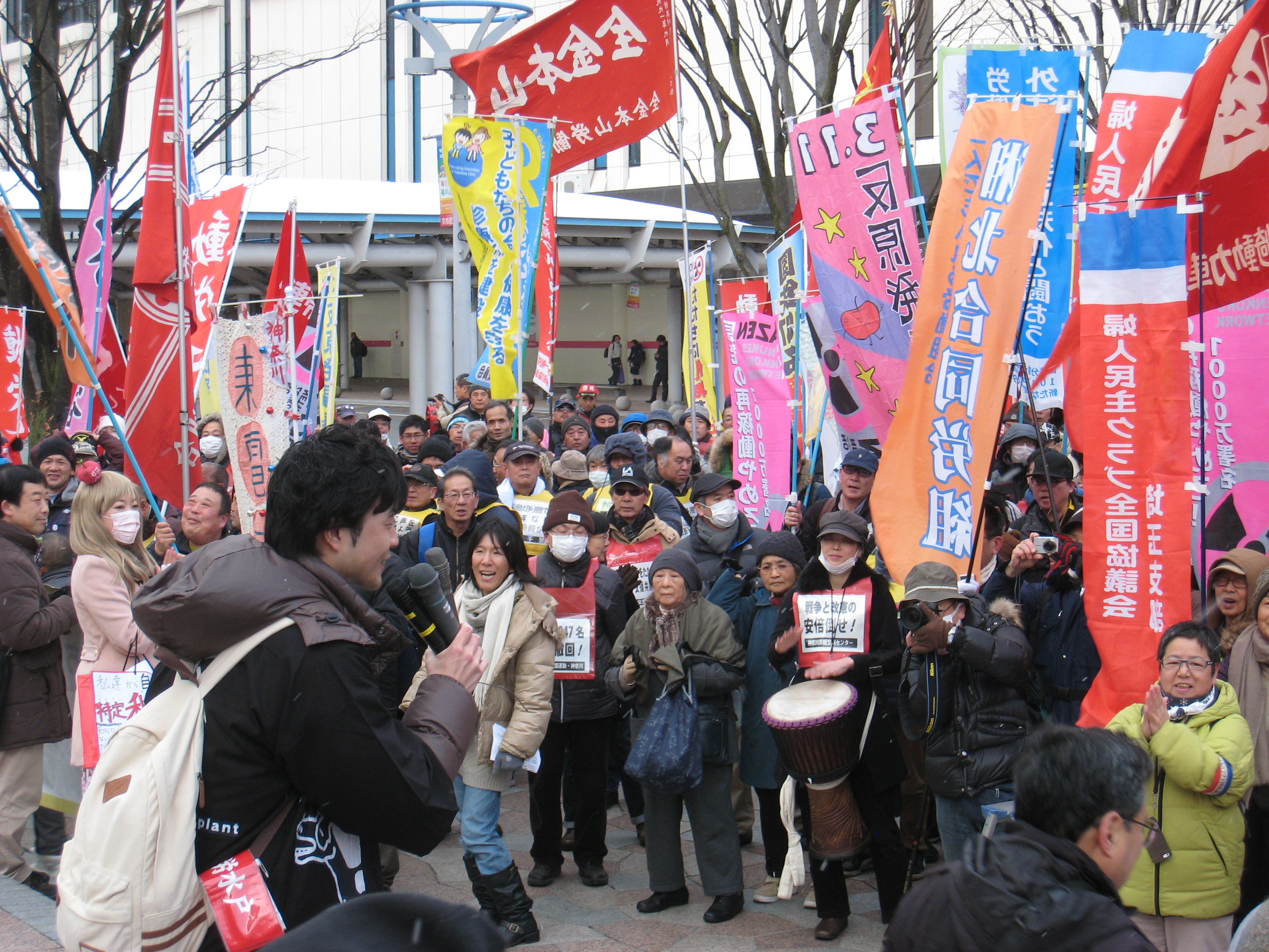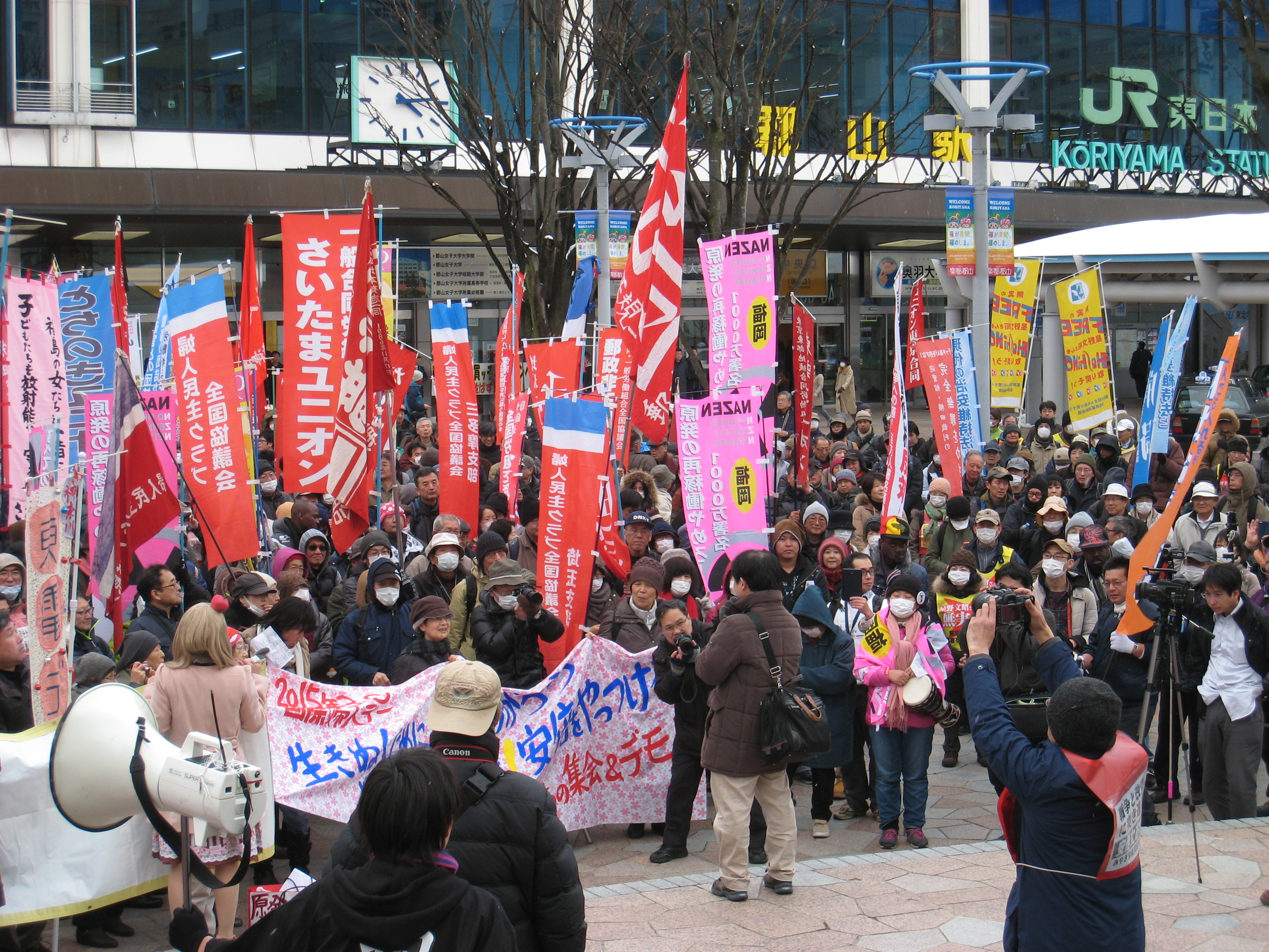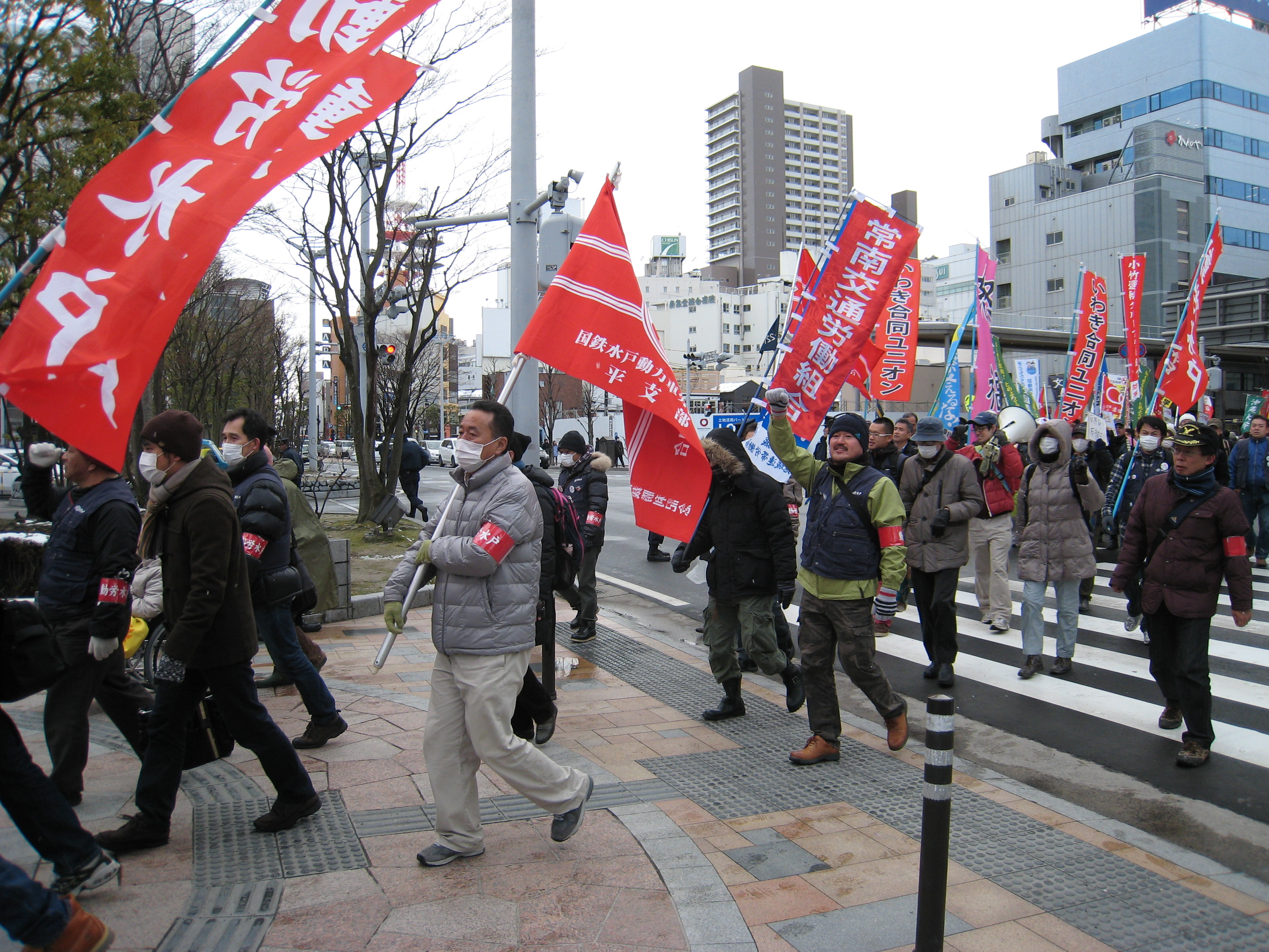 28年前の国鉄分割・民営化で、国鉄の公共性が否定され利益優先に変わりました。ですから動労水戸は今でも分割・民営化反対です。労働組合が分割・民営化に屈伏することと幹部が私利私欲に走ることは一体でした。この屈服から非正規雇用や消費税が導入され、原発増設や自衛隊海外派兵も強行されました。国鉄労働運動が全国の労働者の団結の柱だったのです。だからこそ、JR労働者の団結には、明日をも知れない非正規職労働者、原発事故で故郷を奪われた福島の人々、被曝や戦争に怒る人々を一つにする力があるのです。