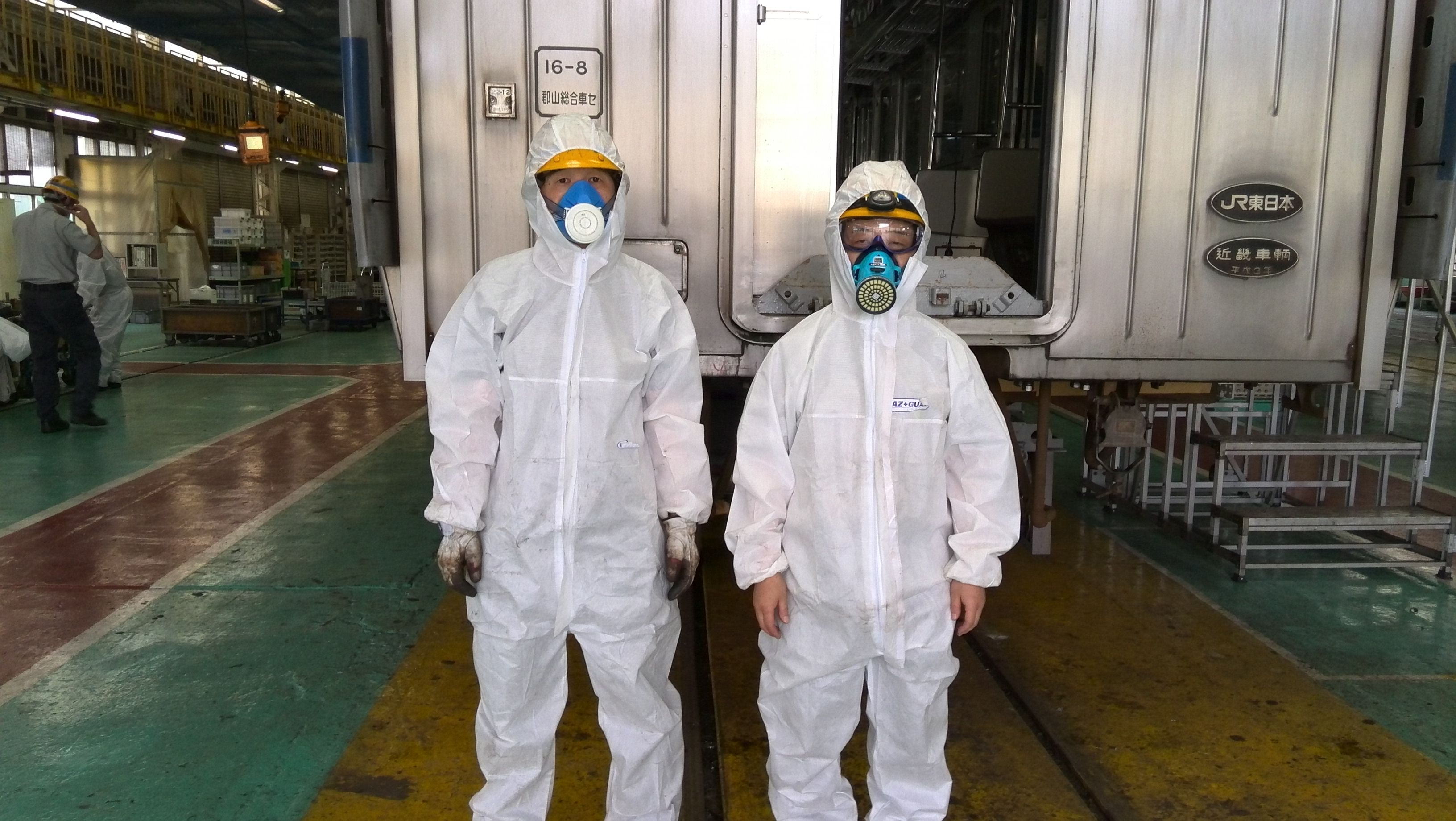 【放射能で汚染されたK544の検修で、防護服を着用し作業する郡総労働者】
