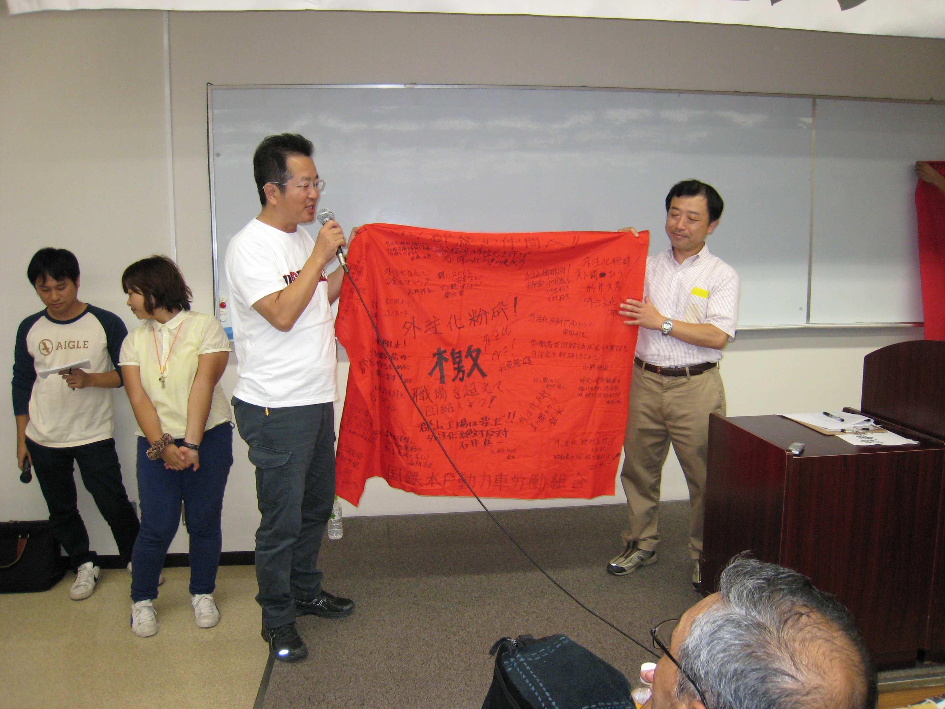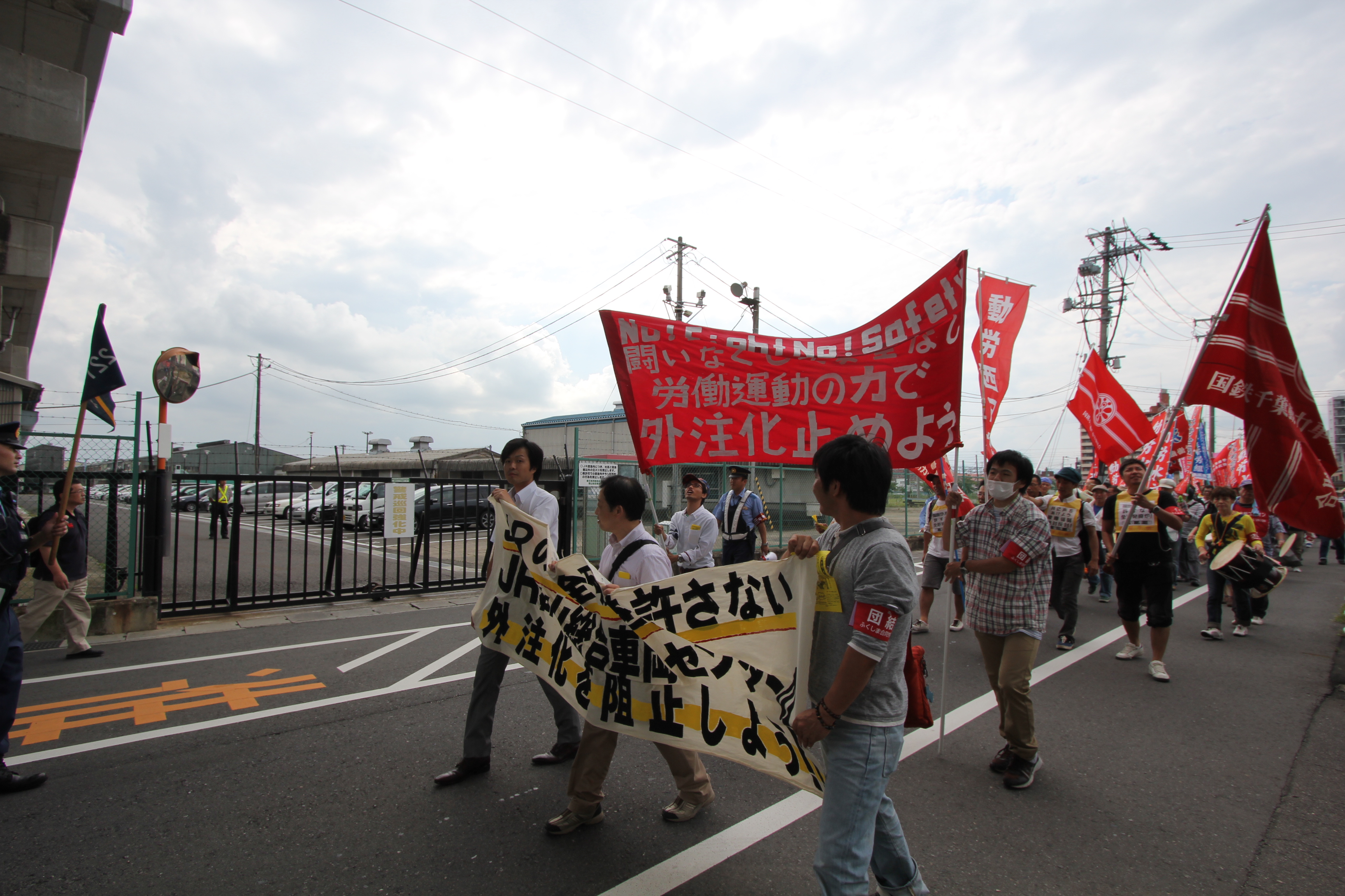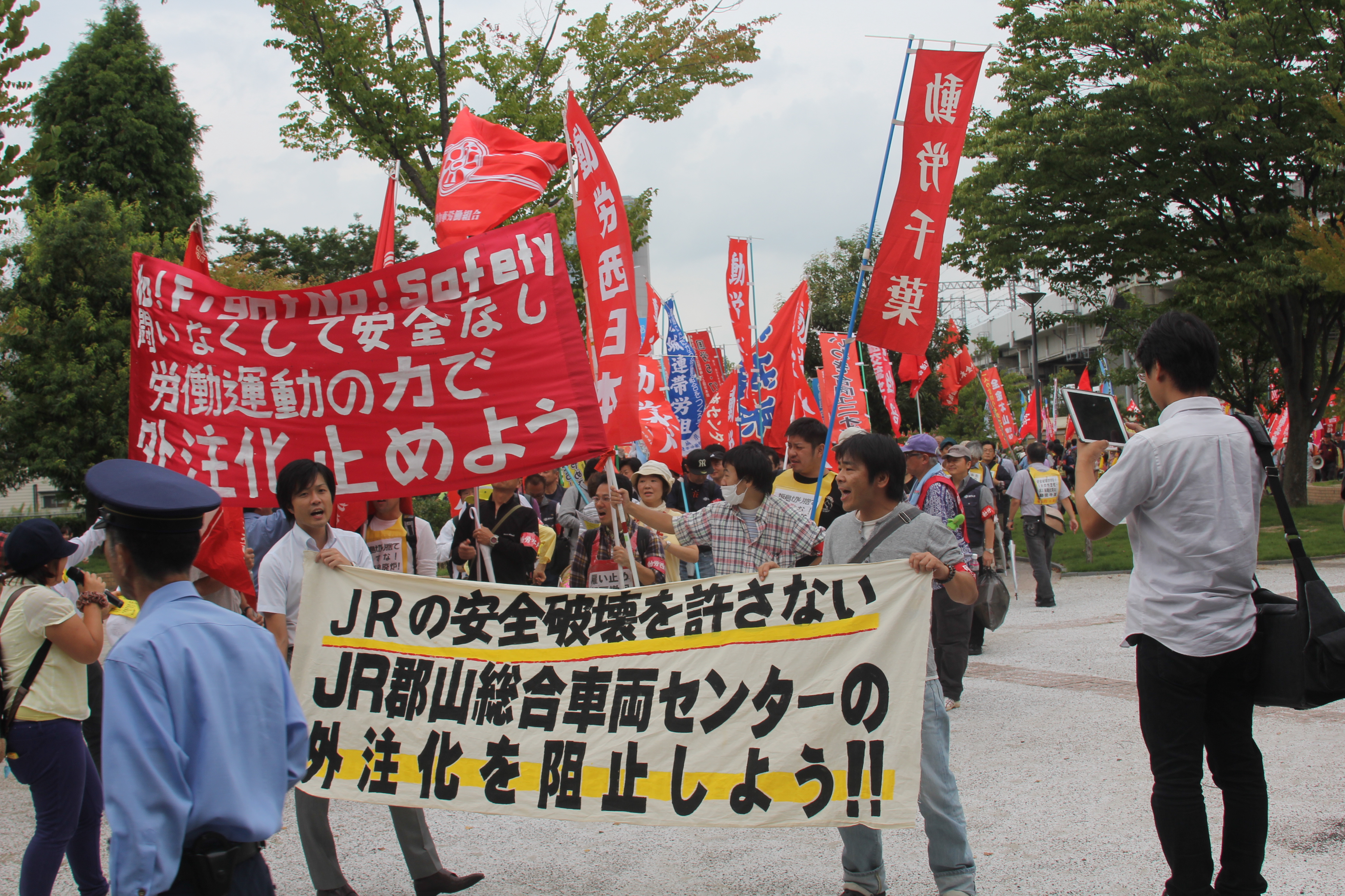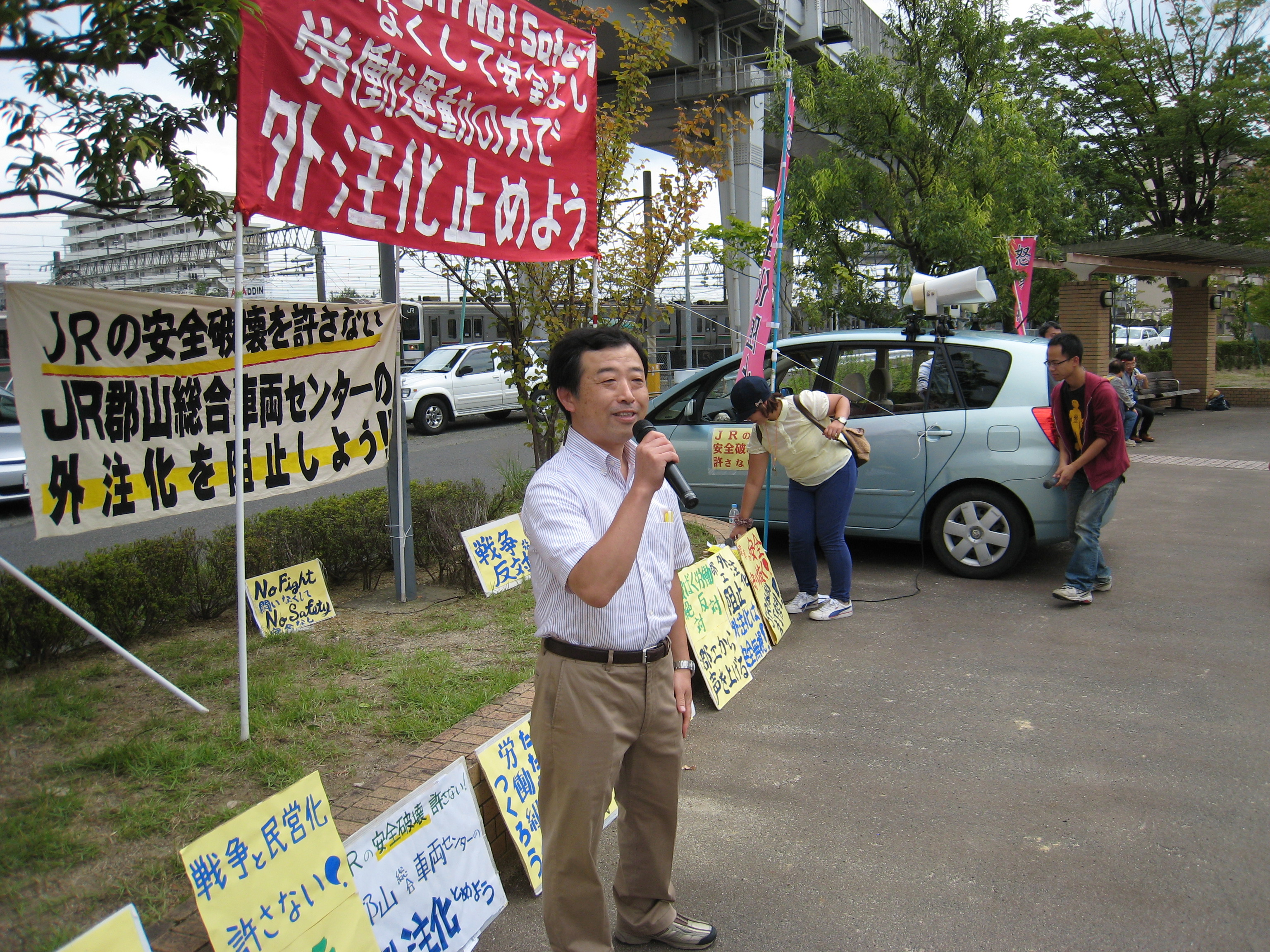 来年には、検修・構内業務外注化強行からいよいよ3年目を迎えます。私たちは、外注化と非正規雇用化に絶対反対します。全労働者をJRに戻せ!労働者に十分な教育を保障し労働条件を同じにするために、全員をJRに採用しろ!私たちは、労働者に対するあらゆる分断を許さない。郡総外注化は、安全の危機です。郡総の闘う労働者と連帯し、鉄道の安全を死守するため、私たちは郡総外注化に絶対反対で闘います。