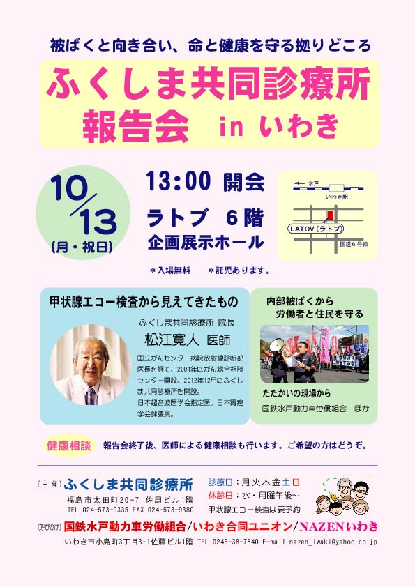 楢葉町民は、「私たちは絶対に乗らない」「JRの若い人たちがかわいそうだ」と言っています。水戸支社は、「誰も乗らない列車は危険」と警備会社の労働者を添乗させています。何と愚かなことでしょうか。