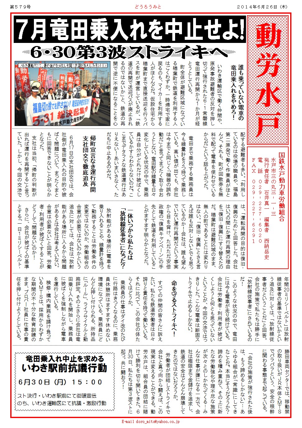 労働者が団結しストライキで会社と真っ向から闘えば、この現実は変えることができる。動労水戸は、組合員の団結に賭けて勝利を切り開いてきた。6月30日、私たちは第3波ストに起つ。共に闘おう!