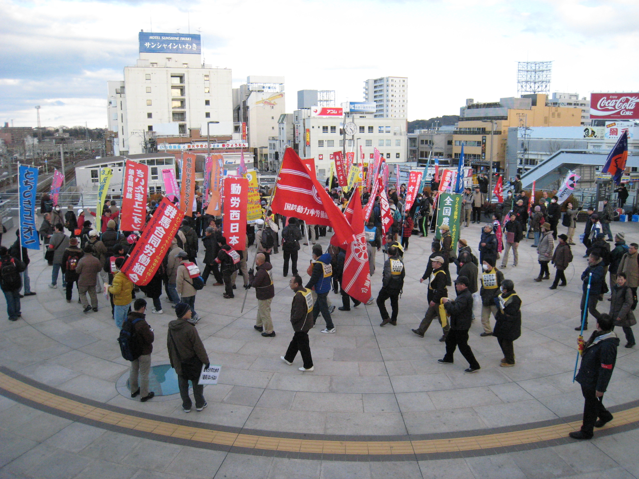 デモ行進はいわき駅~東京電力いわき事業所~市役所・県合同庁舎前を通って再びいわき駅前へ。
