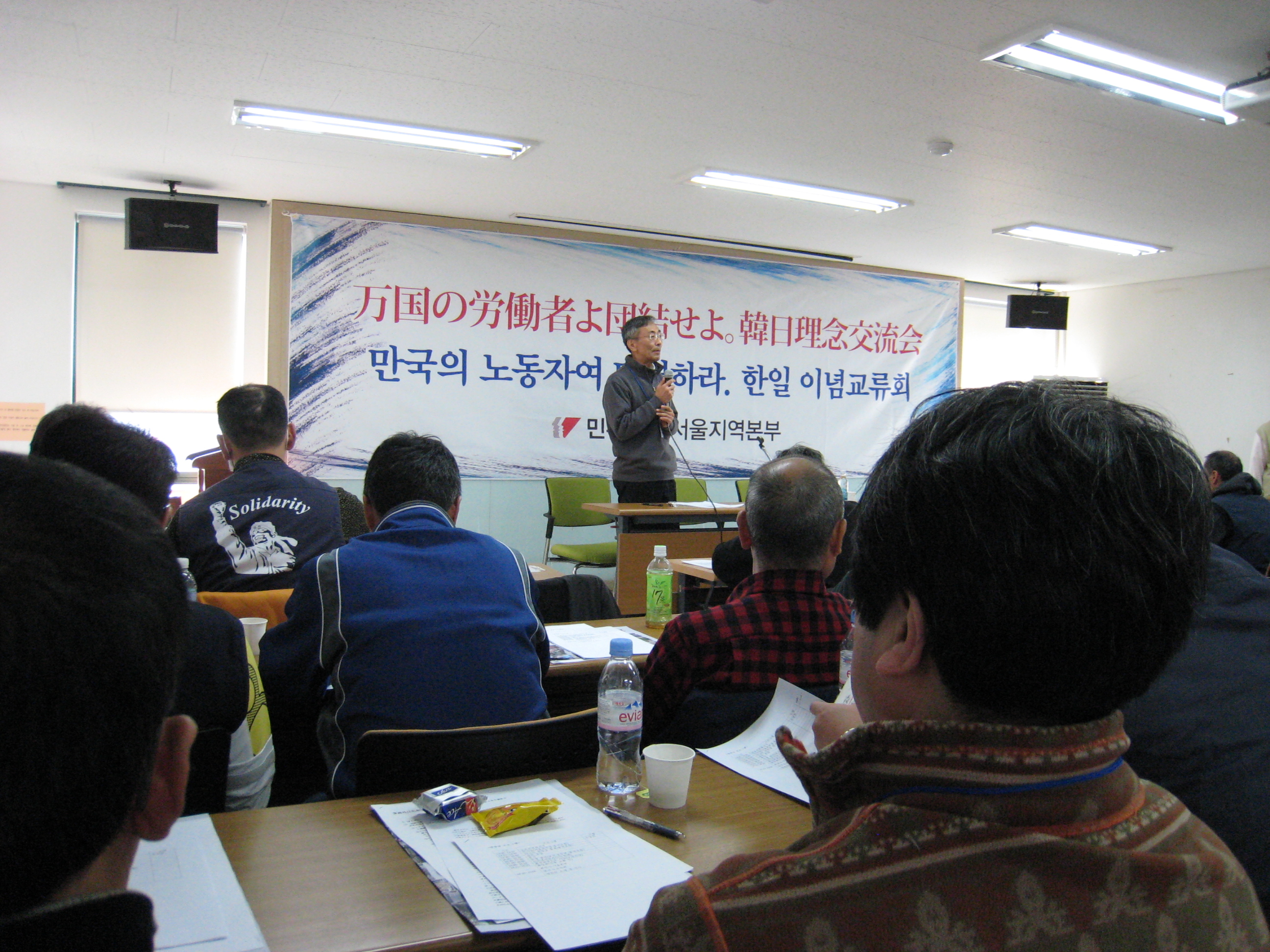 両国の労働運動の取り組みと成果、これからの課題について意見交換を行う集会です。