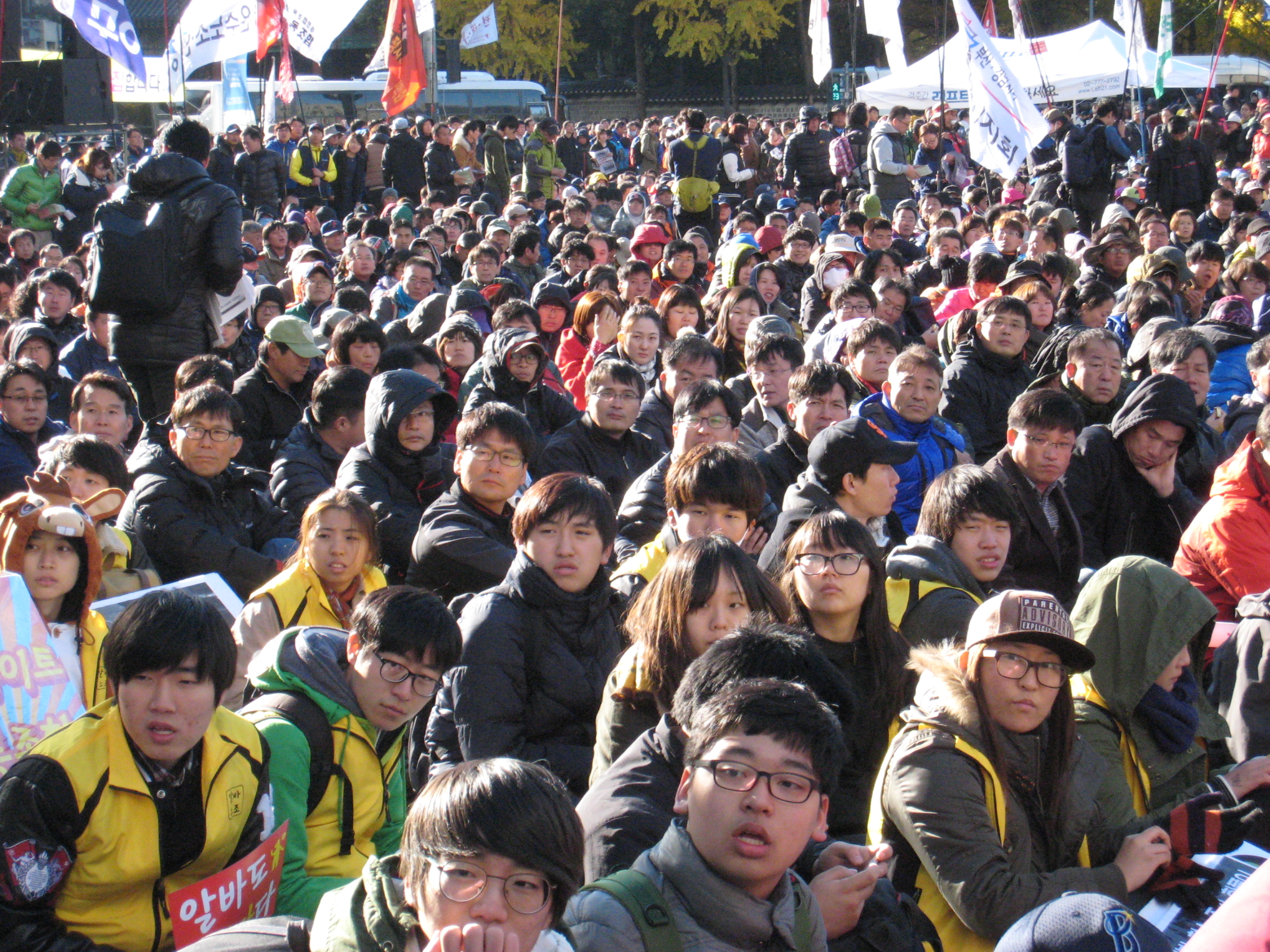 全国から5万人が結集し、ソウル市庁舎前の広場を埋め尽くしました。