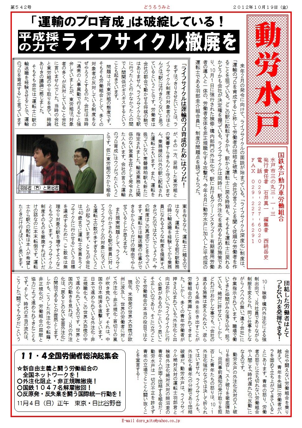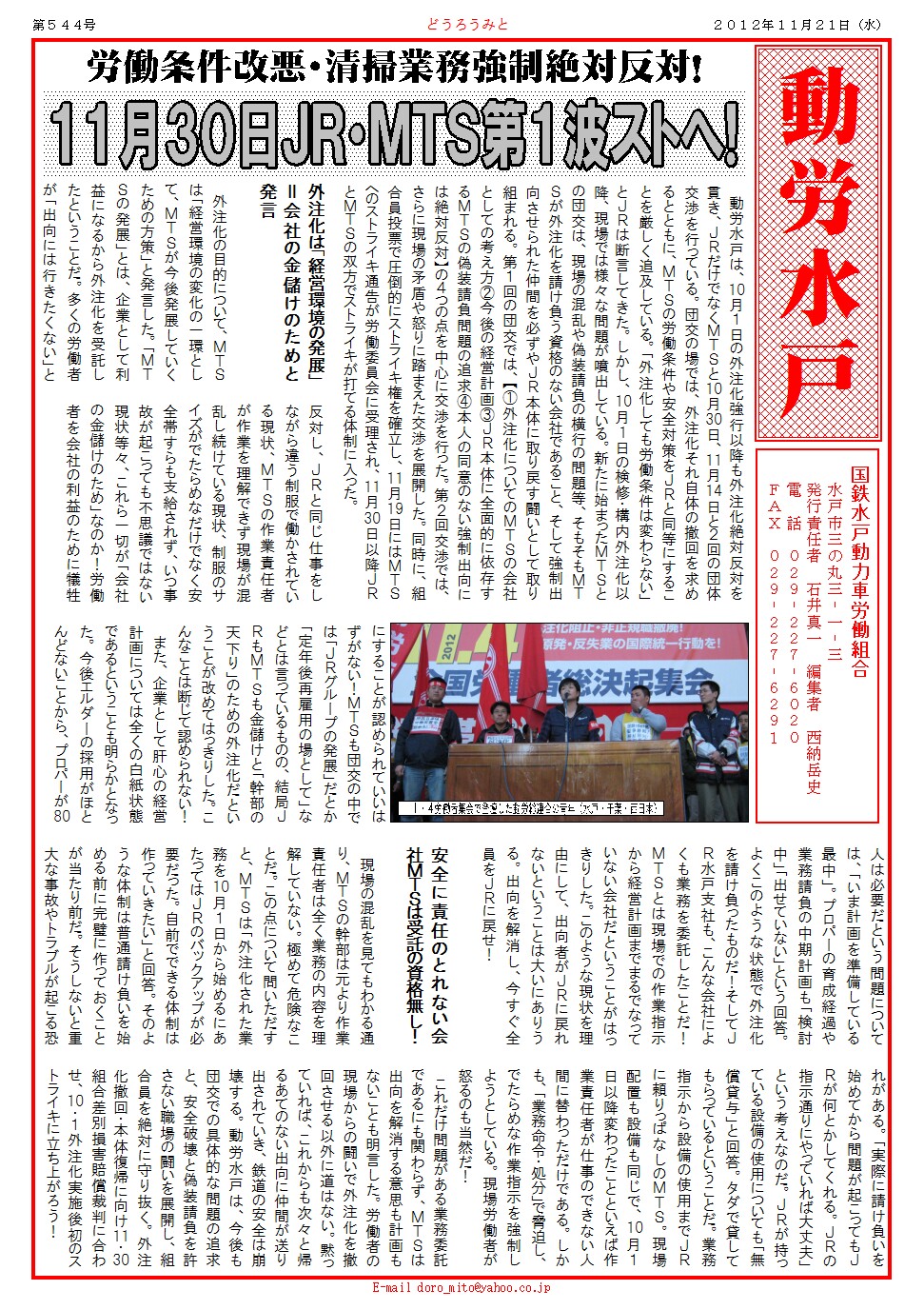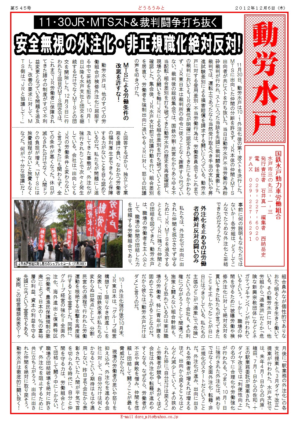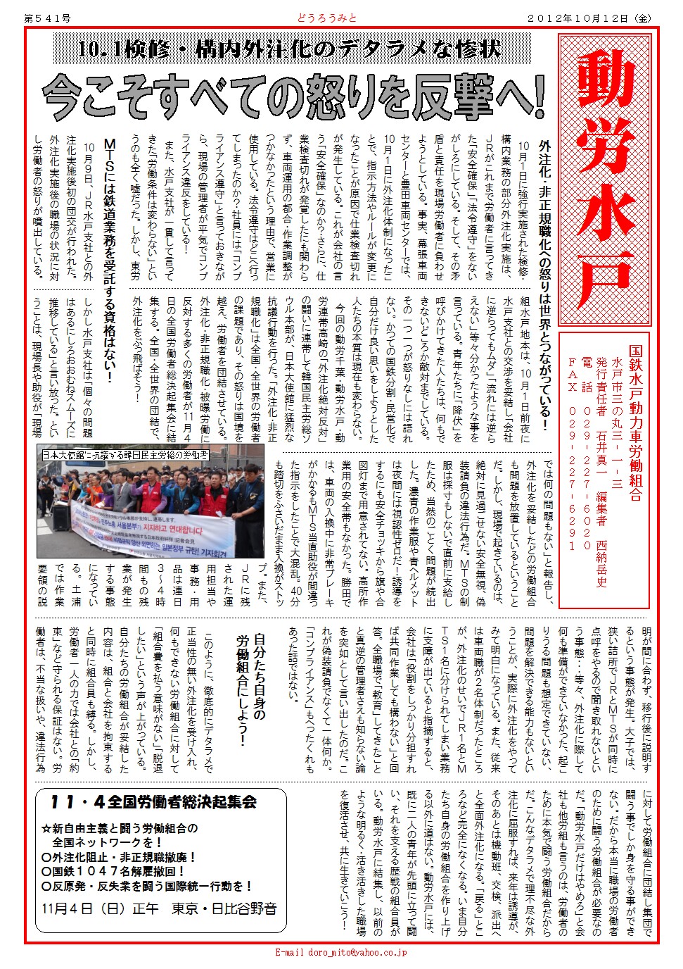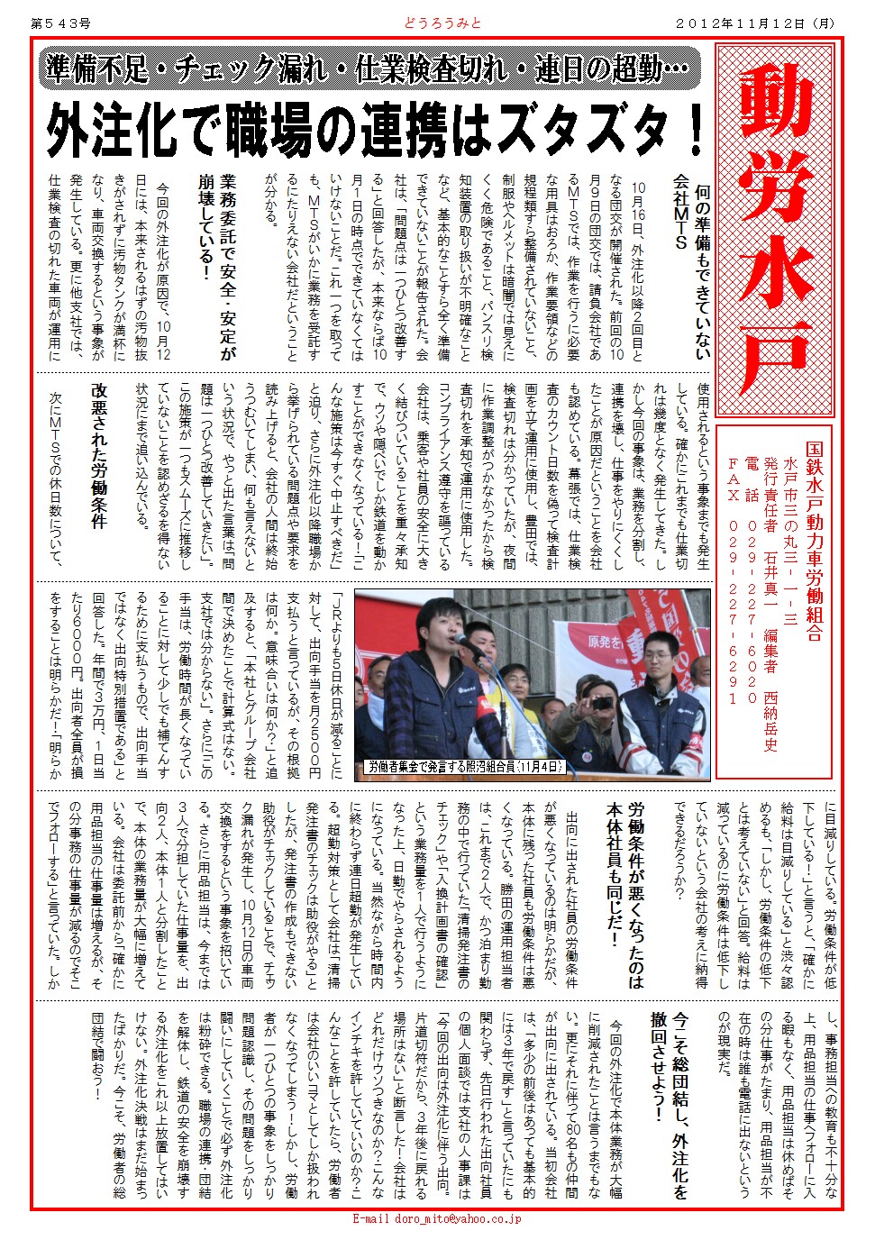 『動労水戸情報』バックナンバーをブログからどうぞ