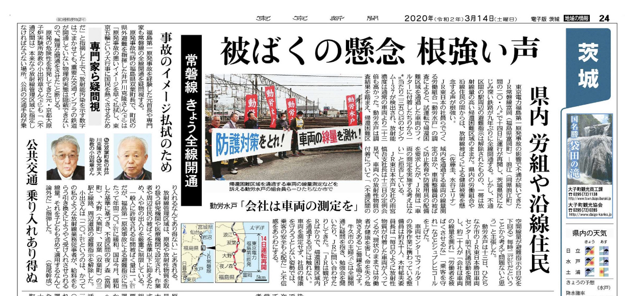 (3月ダイ改・常磐線全線開通反対の行動を報じる『東京新聞』)