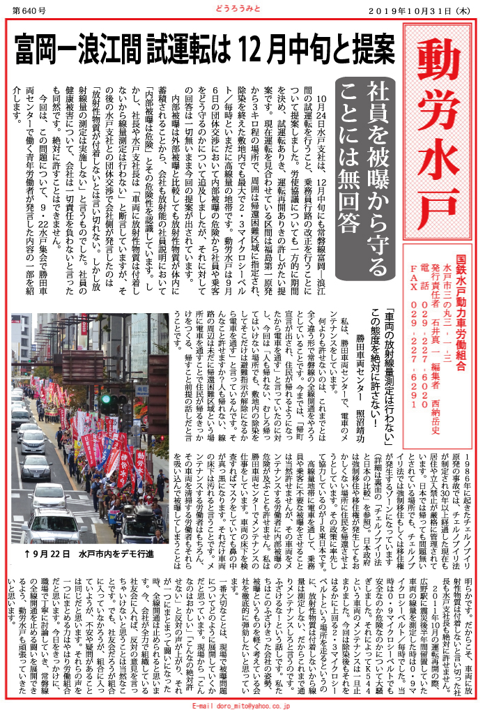 また車両の検査を行う労働者は、これまで常陸大子で行っていた検査を、設備も十分でない水戸で行うこともあり、日替わりで常陸大子と水戸に勤務することになってしまっています。