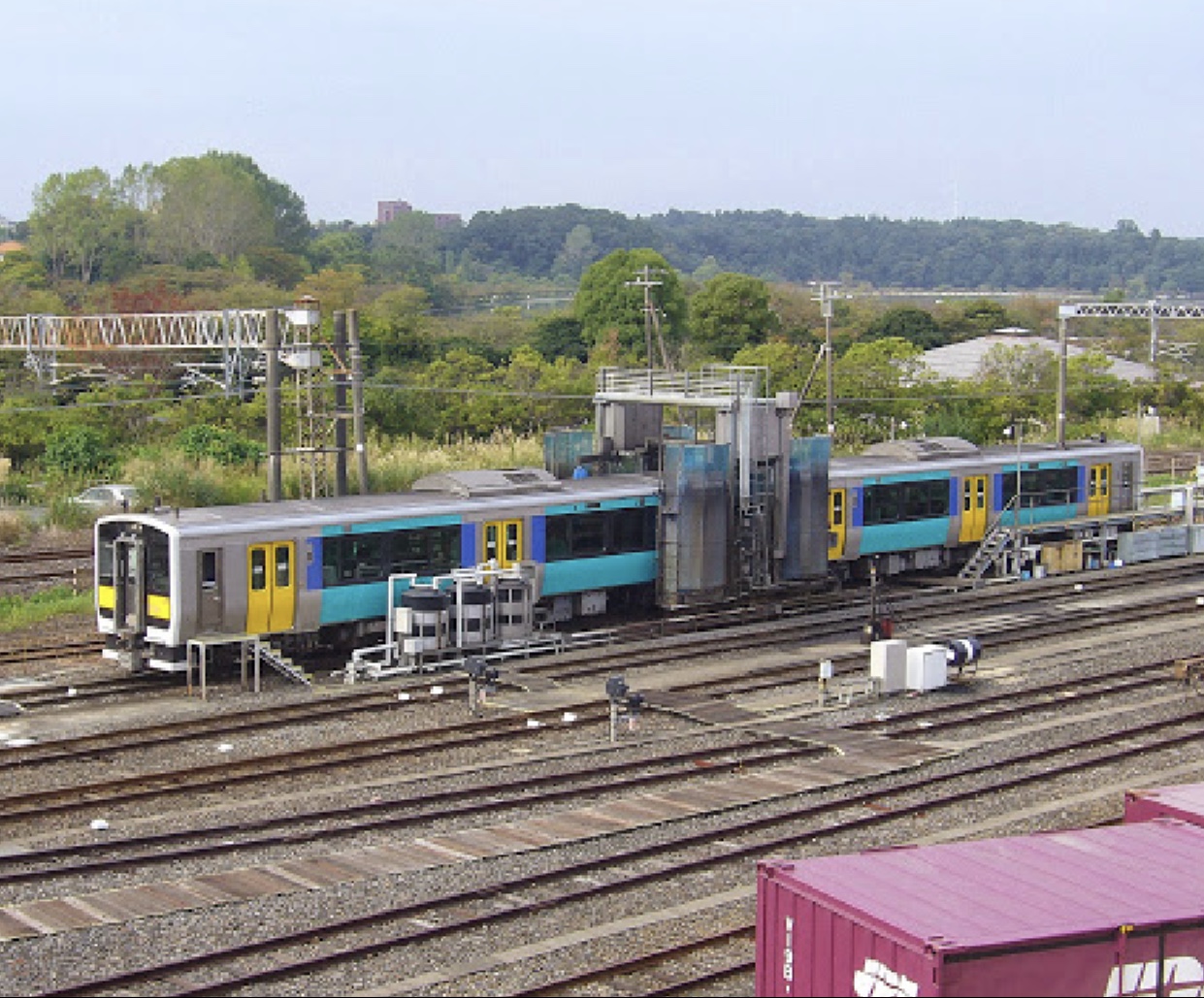(水戸駅留置線=梅香・給油&洗浄作業を行う)
