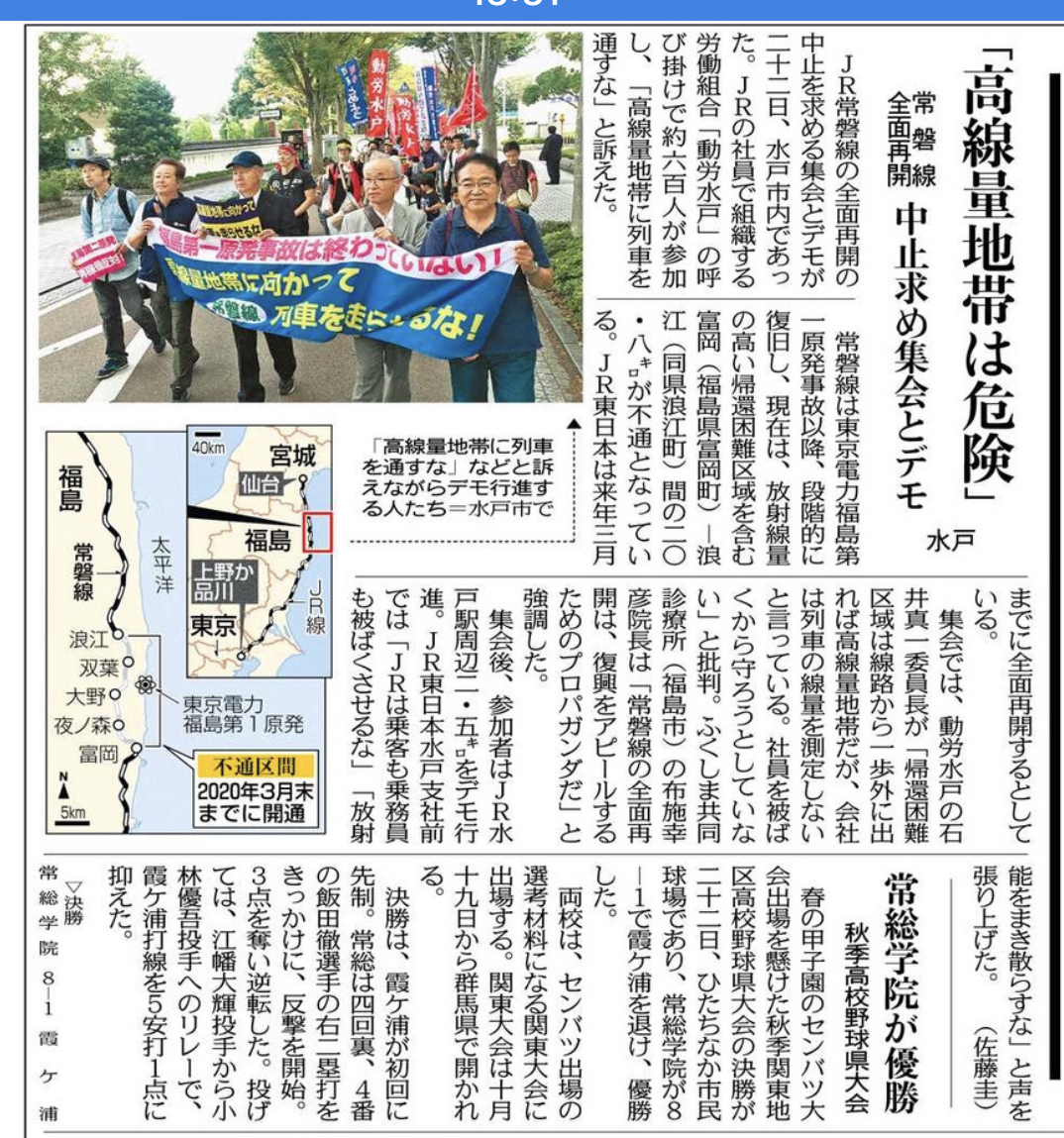 東海村や福島県の現実は、国策による国民の犠牲です。これ以上の犠牲が出されないよう、労働者民衆の運動で命を守っていきましょう。