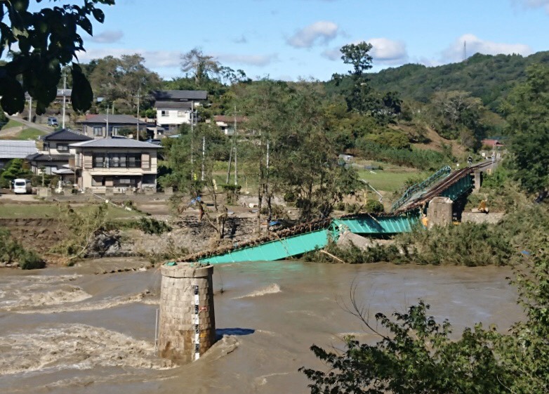 今後の復旧には、協力会社の労働者も一緒に懸命の作業にあたっていくでしょうが、大変な時間がかかると思います。袋田駅近くの「第6久慈川橋梁」では、橋脚までなぎ倒されています。自然の猛威をまざまざと見せつけられた思いです。