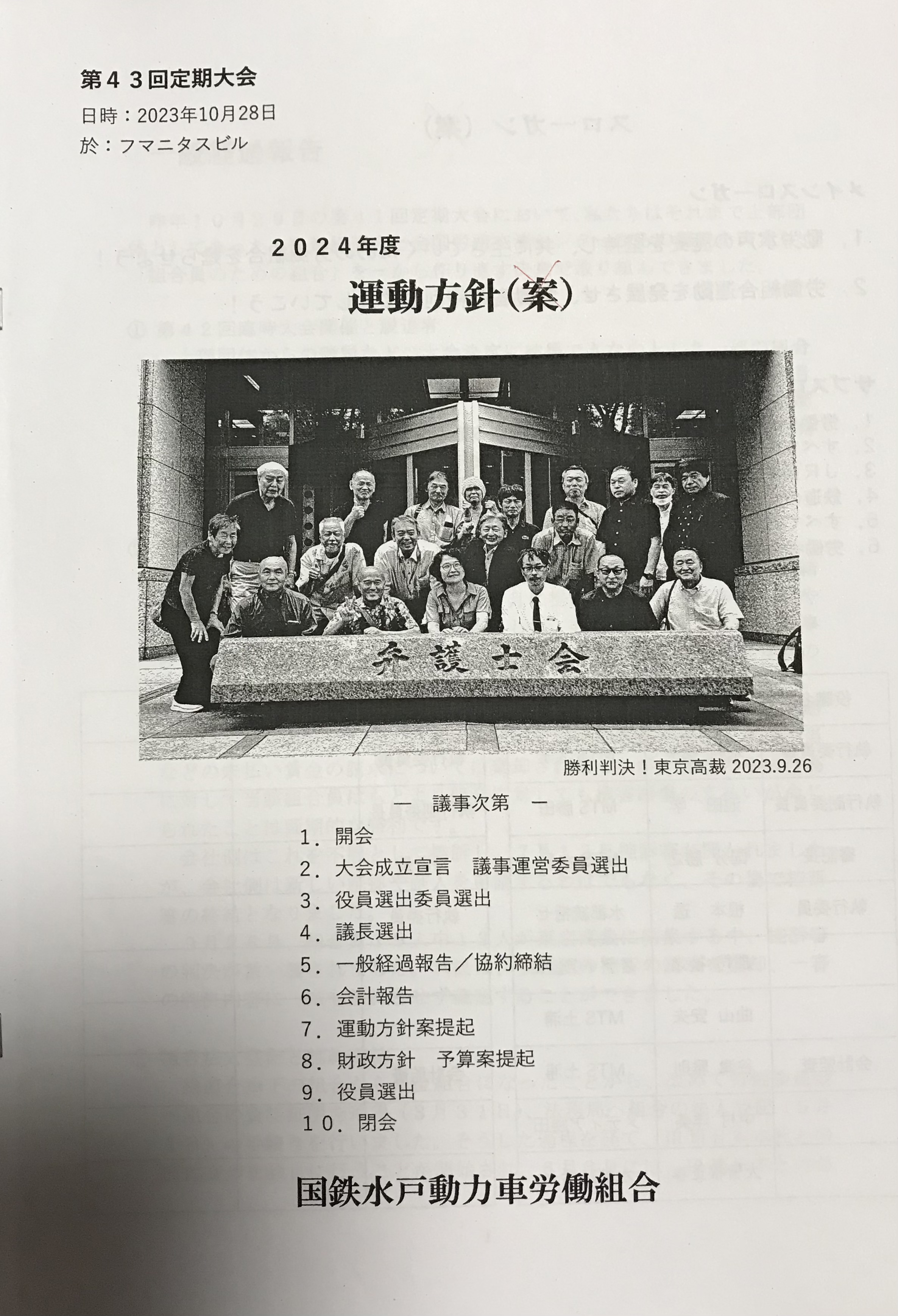 私たち動労水戸は10月28日に、第43回定期大会を開催しました。私たちはこの大会で、労働組合運動の後退止め、職場に労働組合運動を蘇らせるために取り組んでいく方針を確立しました。