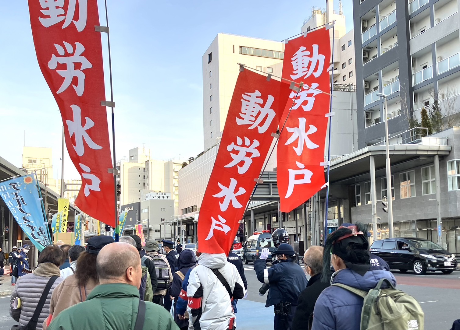 動労水戸は1月13日、「2024年団結旗開き」を開催し、組合員の新年の親睦を図りながら、今年も組合員の力を合わせて労働運動を進めていく決意を固めました。