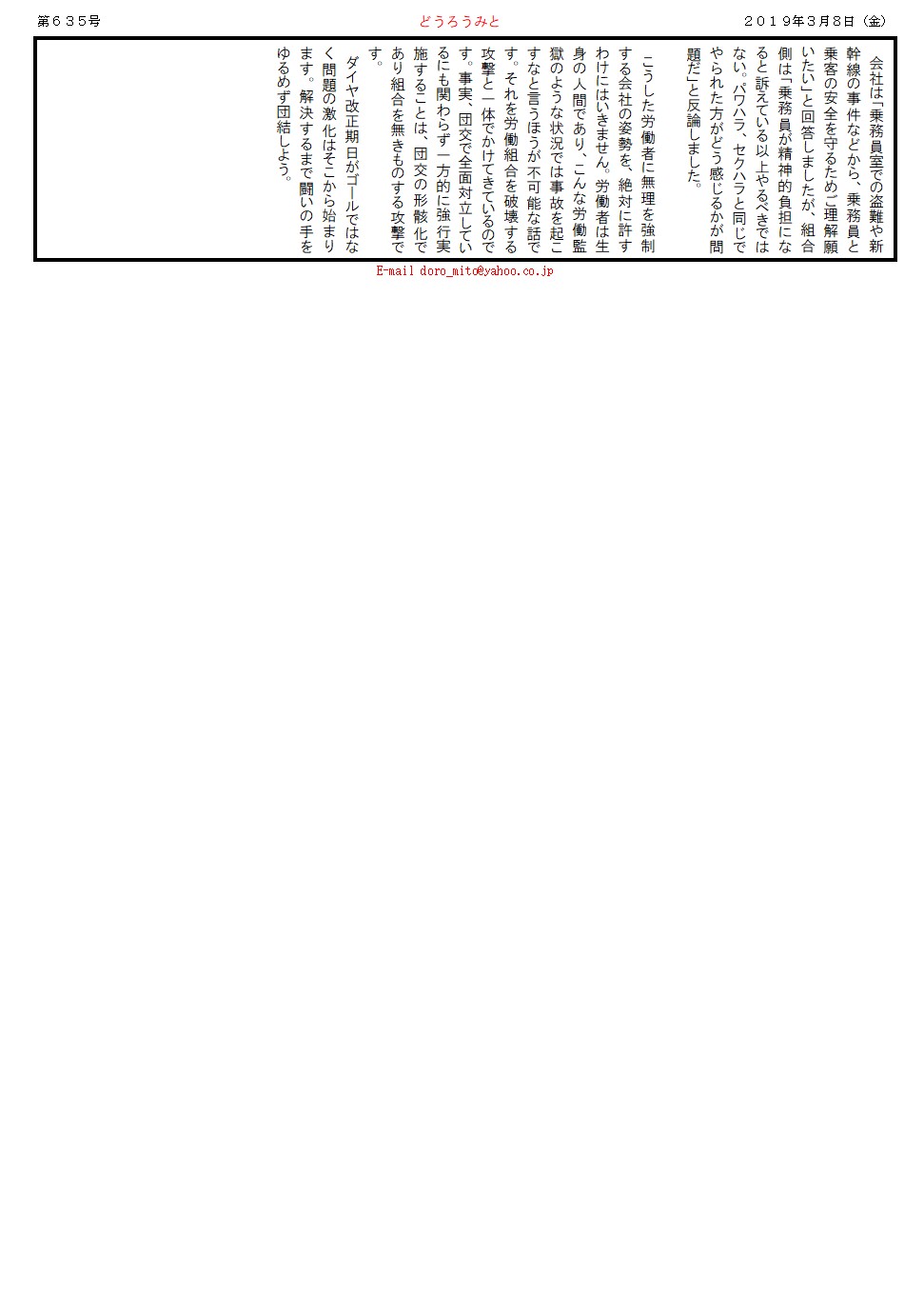 ダイヤ改正期日がゴールではなく問題の激化はそこから始まります。解決するまで闘いの手をゆるめず団結しよう。