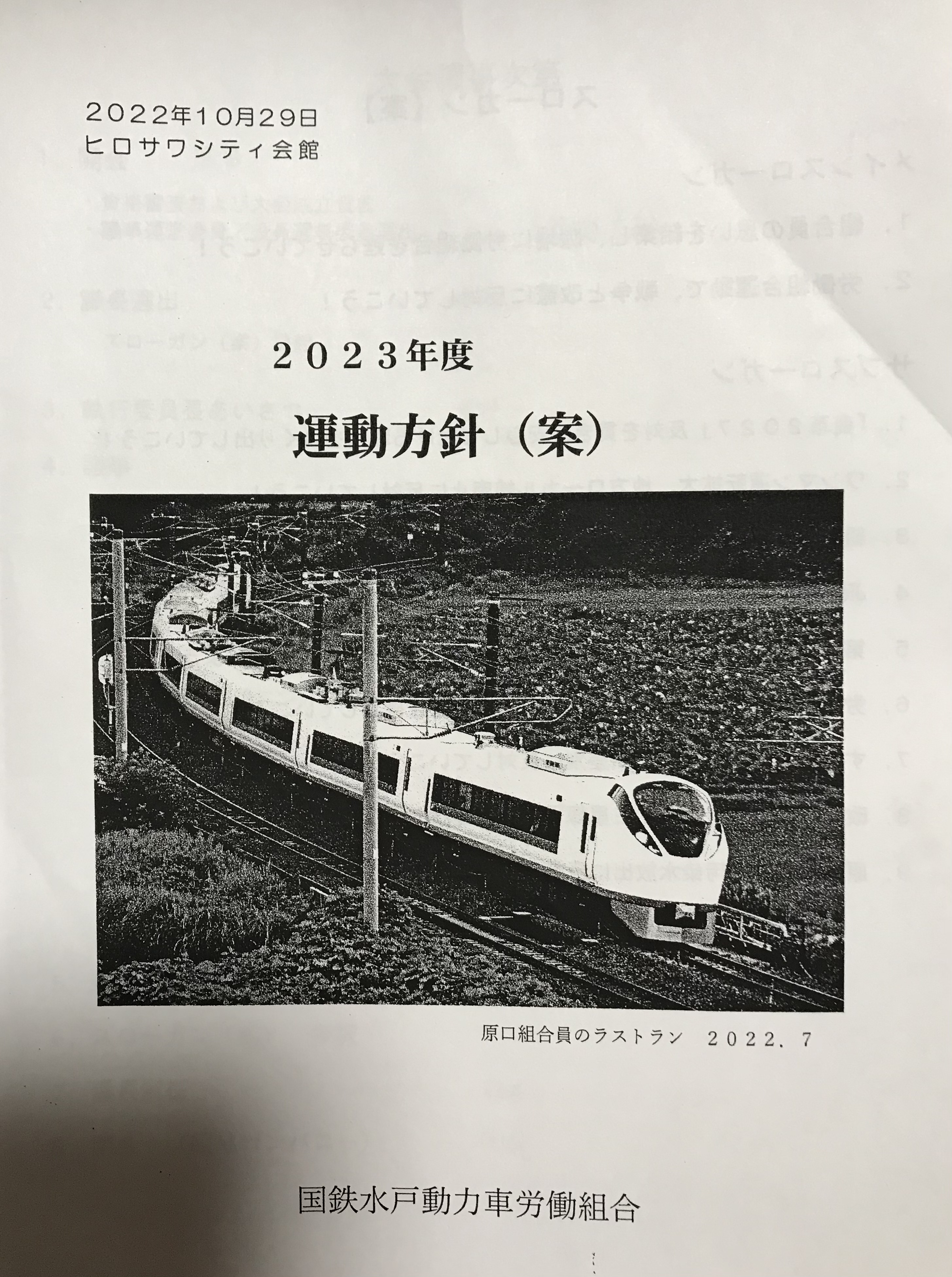 それぞれの仕事の大切さを改めて捉え返し、みんなの団結で鉄道の仕事を守っていきましょう。