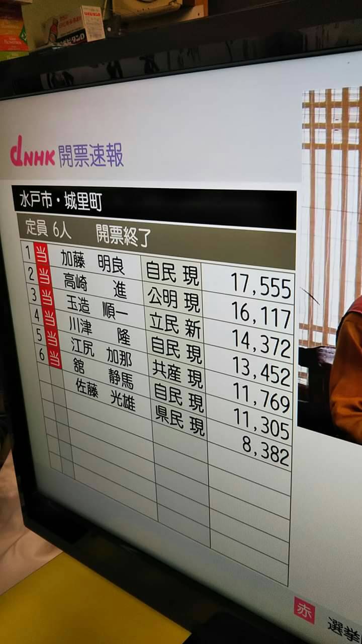 茨城県議会議員選挙。玉造順一候補大勝利!