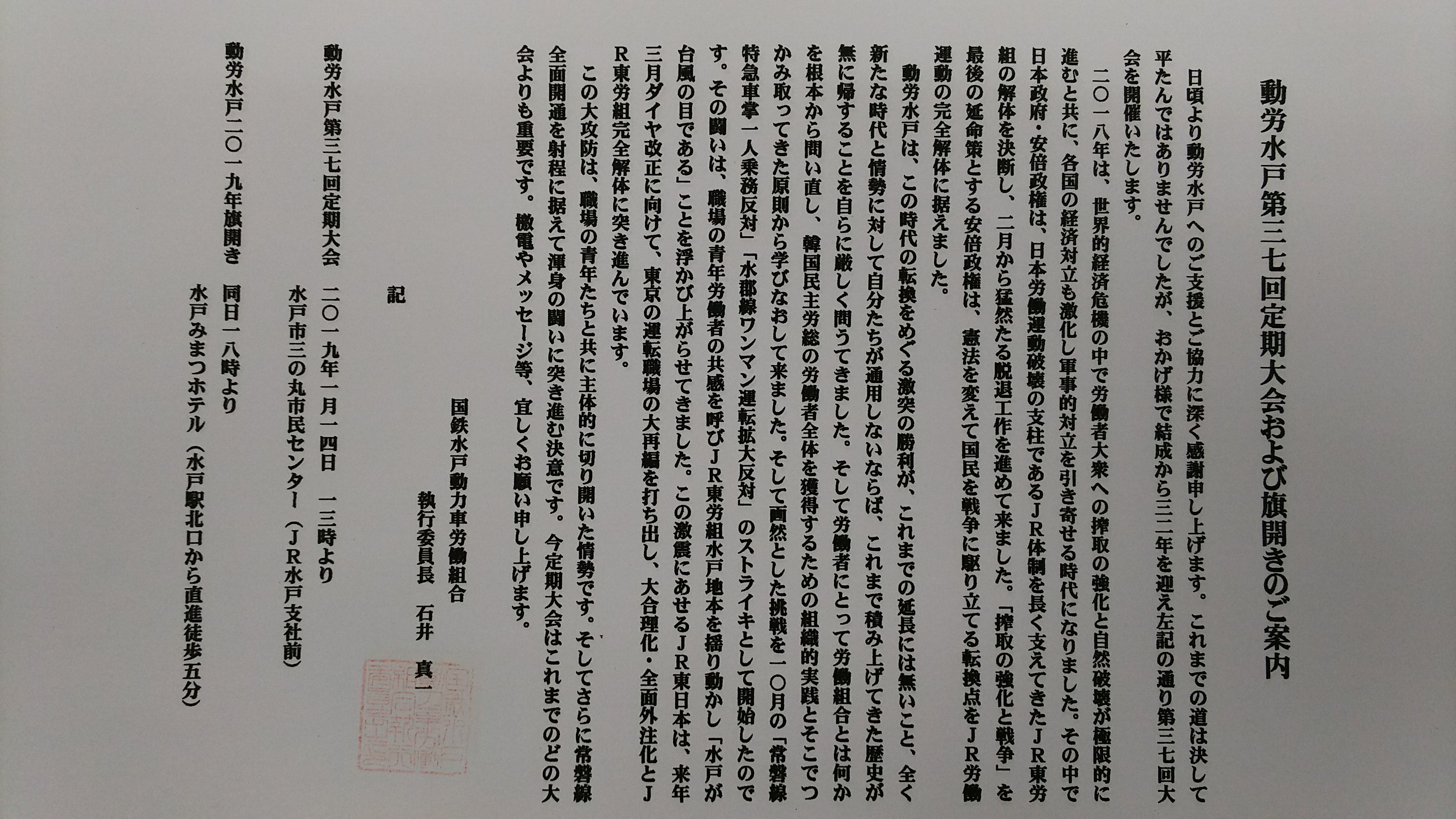 特に職場のみなさん!動労水戸と一緒に全てを、根本から変えて行きませんか。