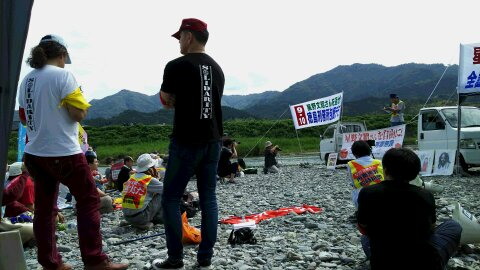 (動労水戸。おやじ二人の背中。徳島市鮎喰川岸にて。)