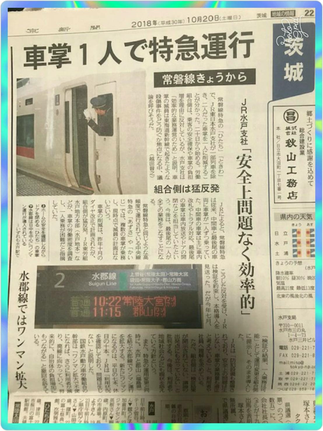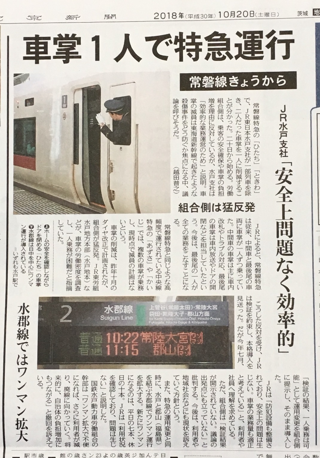 昨日の常磐線の無線が聞こえてきた中では、特急での指定席の重複があり、いわきから勝田まで1人乗務のため対応できなかったと言っていました。団体交渉で問題にしたことが出てしまいました。