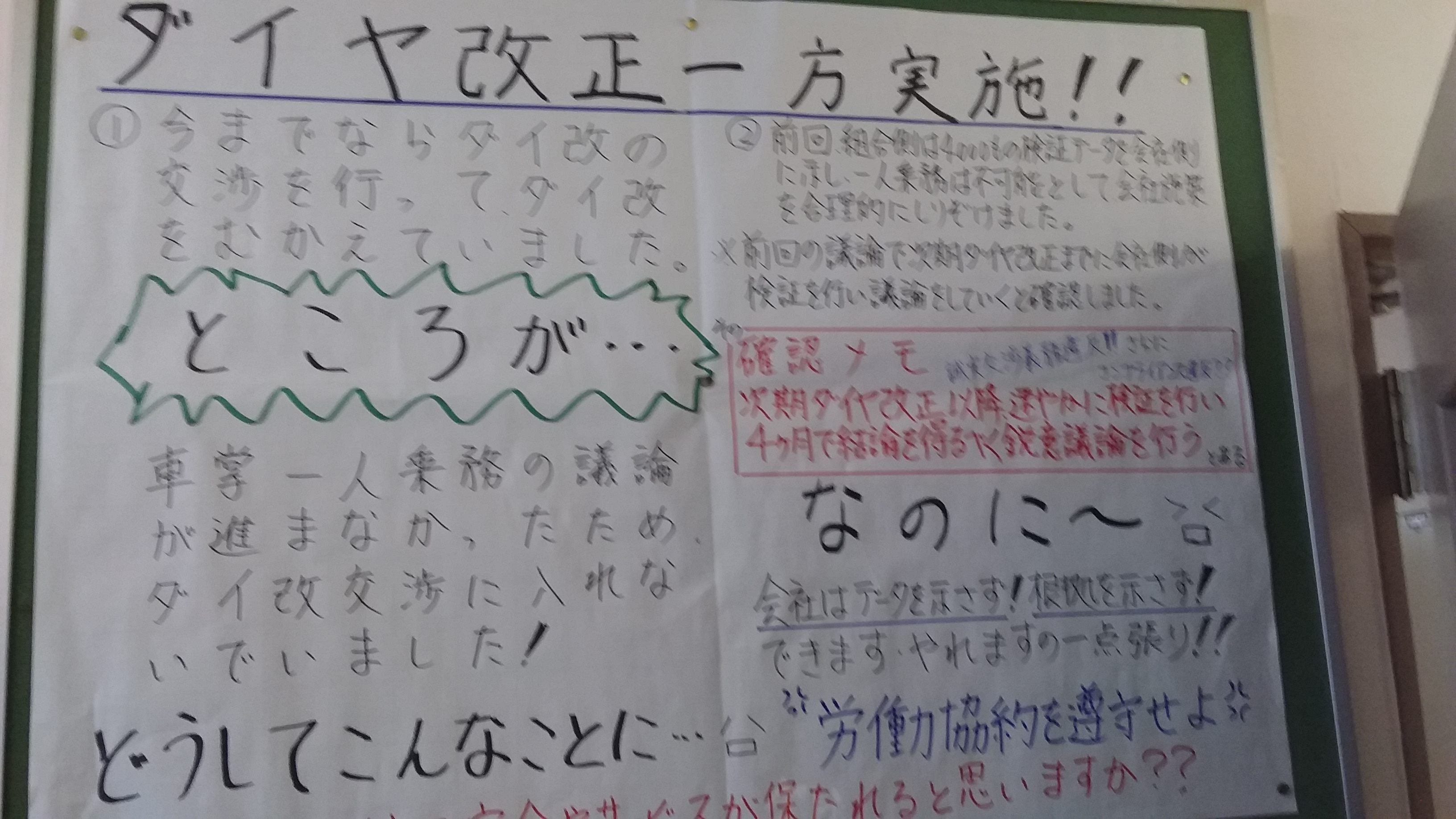 (大子運輸科で貼り出された東労組の掲示。)