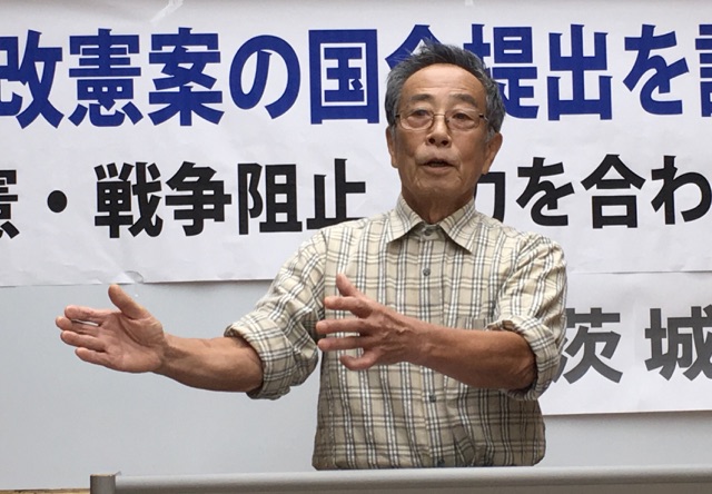 続いくアピールでは元県職員の浜田篤信さん。「霞ケ浦導水事業は国家権力による地方の収奪だ」「大規模開発(資本の利益)のために生物多様性が破壊されてきた」ことを歴史的に証明するとともに、漁業者の闘いによって高浜入干拓事業や成田空港が建設される以前の霞ケ浦1/3埋め立てを阻止してきたことを報告。「霞ケ浦導水事業と改憲は根っ子はいっしょ。改憲を許さずともに闘っていこう」と訴えられた。