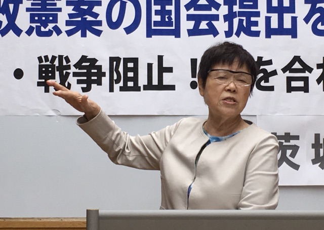 「ついに安倍政権は改憲を出してきた。日本を再び戦争のできる国につくりかえようとしている。戦争が近づくと優生思想が進む。『尊厳死法案』が国会に出されようとしている。福祉が切り捨てられていく。相模原事件が繰り返されていく。改憲に共に反対していこう」(茨城青い芝の会)