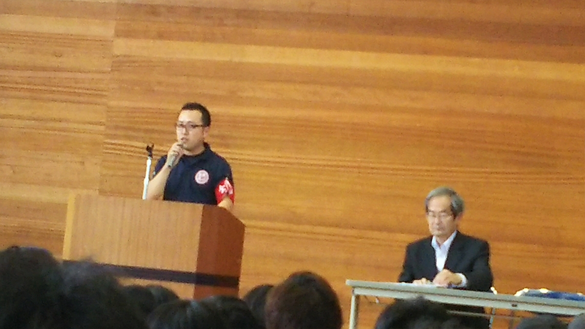 基調報告は呼びかけ人であり動労水戸委員長の石井真一さん。「安倍三選をもって10月26日にも自民党改憲案提出が強行されようとしている」情勢のもと、戦後憲法がどのような経緯で作成されたか、憲法前文と「天皇主権」の大日本帝国憲法を引用し明らかにし、「安倍総理は、自分が主権者であるがごとき態度で改憲しようとしている。許しがたい暴挙」と断罪した。「改憲によって労働運動が弾圧され、もの言えぬ社会になる。すでに労働現場で始まっている」「改憲・戦争阻止!の一点で団結して、本日をもって闘いを開始しよう」と熱烈に報告。