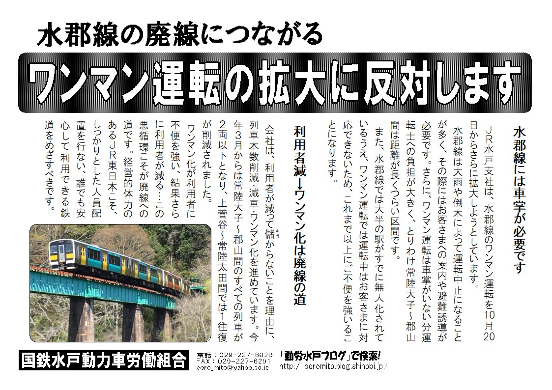 動労水戸青年部の照沼靖功さんの司会進行で、元気かつ熱気にあふれた討論となり、職場での闘いを軸にただちに地域に打って出て街頭宣伝、署名活動を開始し国会に攻め上っていくことが確認された。