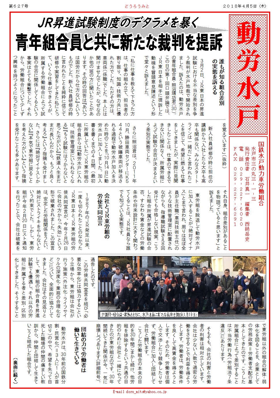 JR昇進試験のデタラメを暴く青年組合員と共に新たな裁判を提訴誰もが知る組合差別の実態を訴える 3月2日、JR東日本の昇進試験における不当な差別を争う裁判が水戸地裁で開始されました。