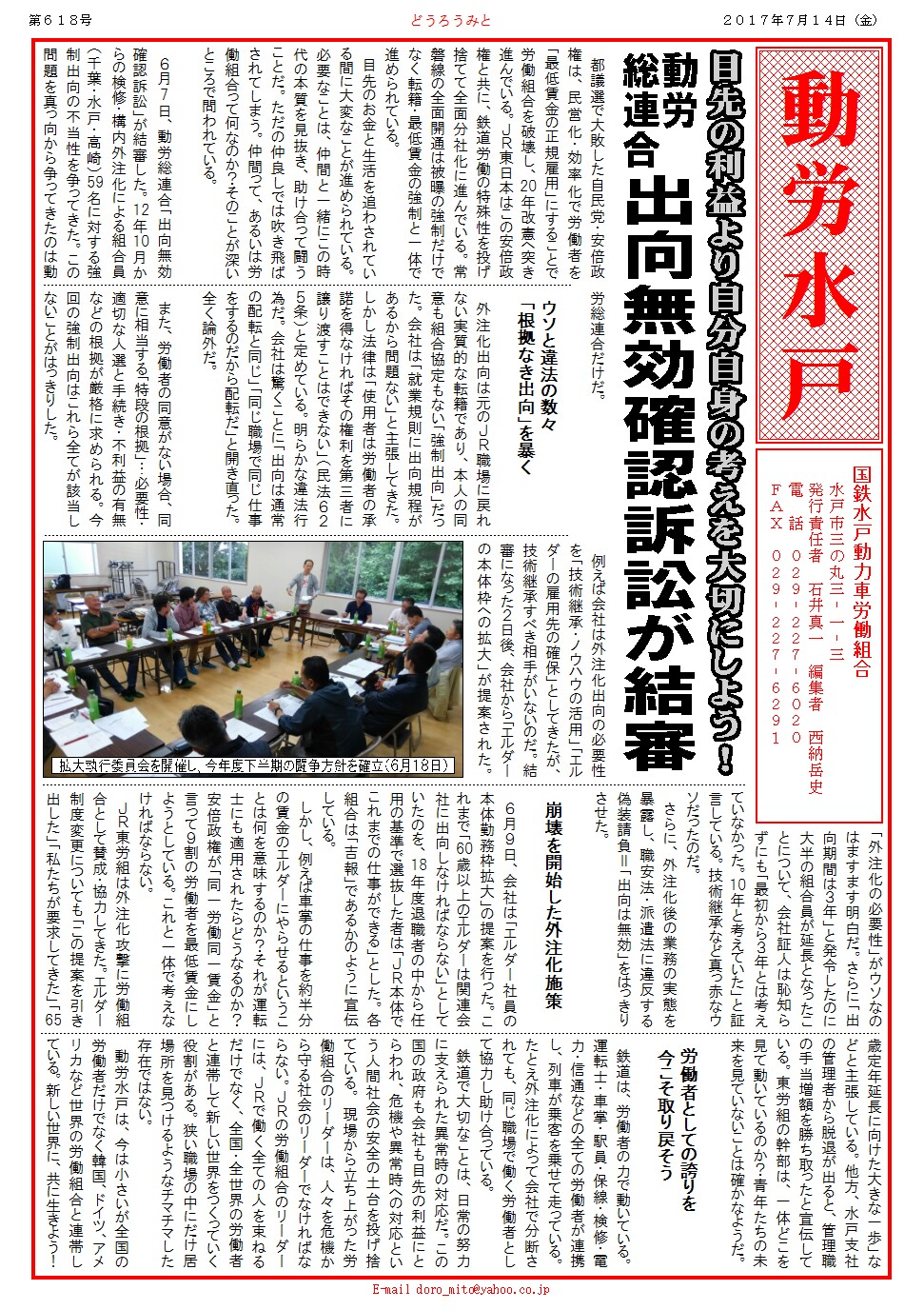 私は動労水戸への加入を考えたのは、ライフサイクルの深度化で、「腹を決めて闘うなら、一緒に闘うよ」と言ってくれた動労水戸の先輩がいるからです。かたや、俺には関係ないと言う先輩がいる。かたや、一緒に闘うと言ってくれる先輩がいる。どっちを選ぶかなんて決まっちゃいますよね。