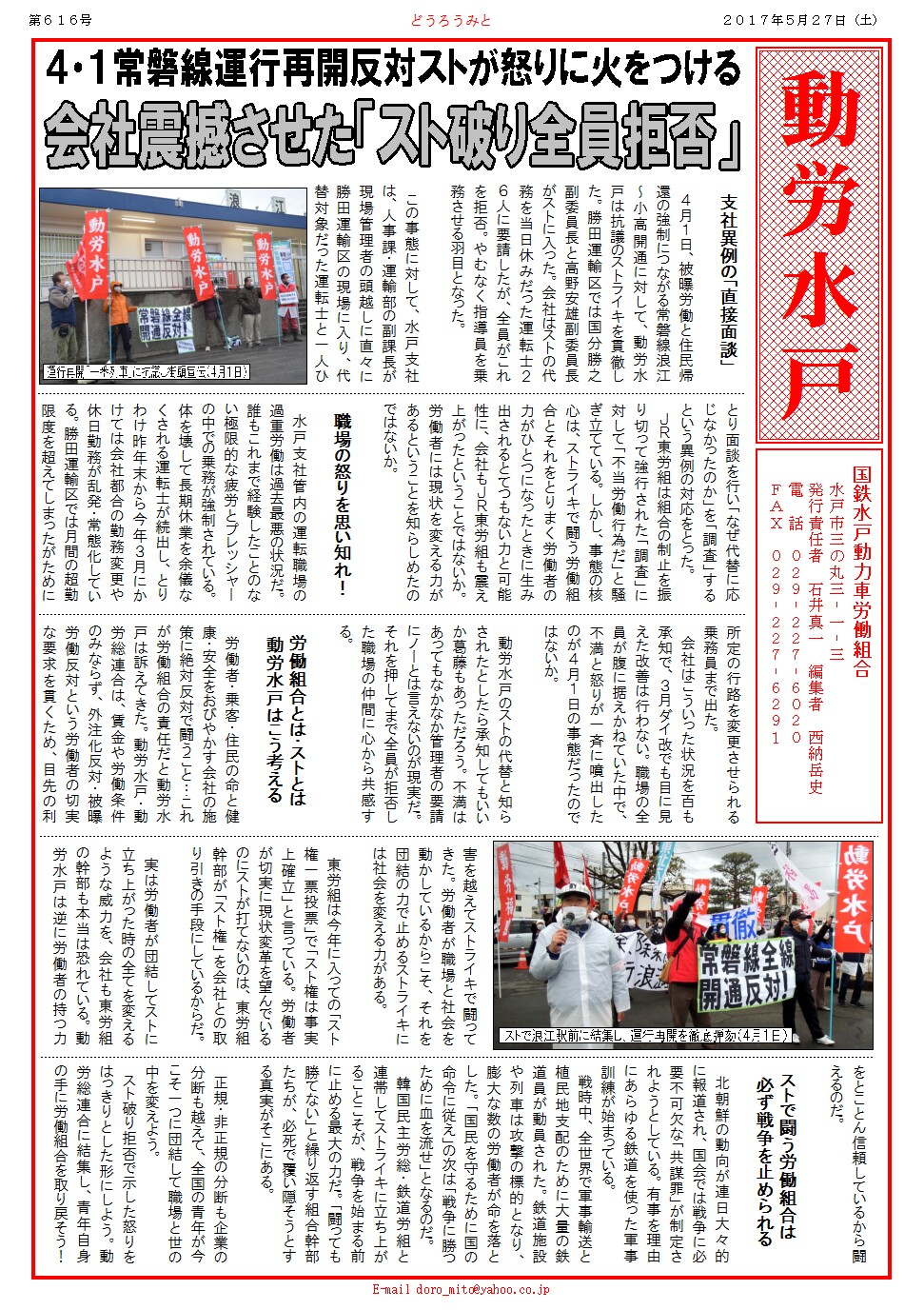 福島県民の怒りの声を圧殺し、東京五輪までに原発事故を無かったことにしようとしているのです。このような、労働者や住民・乗客の安全を無視するJRを絶対に許してはいけません。